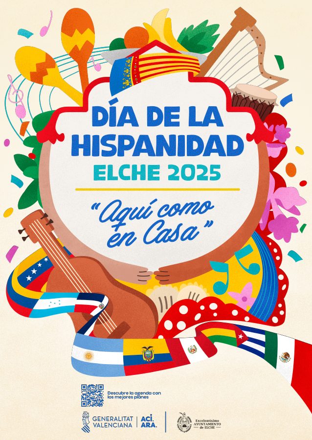 En Elche, el escenario de la celebración será la Plaza Francesc Cantó, en la Avenida de la Novelda. El viernes día 10 será el acto de apertura de las Fiestas de la Hispanidad a partir de las 20.00 horas con el pregón a cargo de María Auxiliadora Guilarte Acosta, natural de Venezuela, y después la actuación de DJ y bailes latinos, hasta las 22.30 horas.