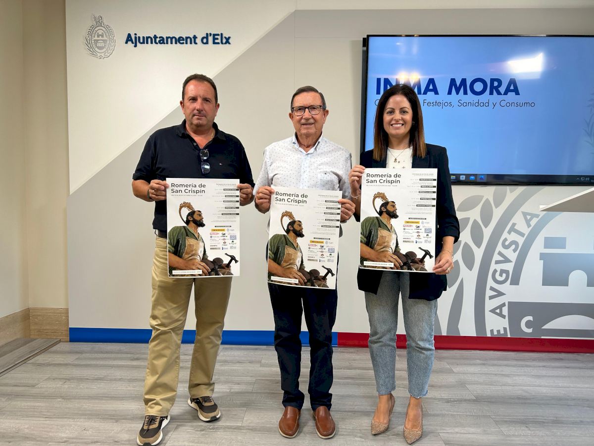 El presidente de la Asociación Amigos San de Crispín, Juan Manzano, ha explicado que las fiestas comenzarán el día 14 de octubre con el pregón que tendrá lugar a las 20.00 horas en el Centro de Congresos de Elche y que pronunciará Yrene Tomás, representante de la empresa de calzado Nordikas.