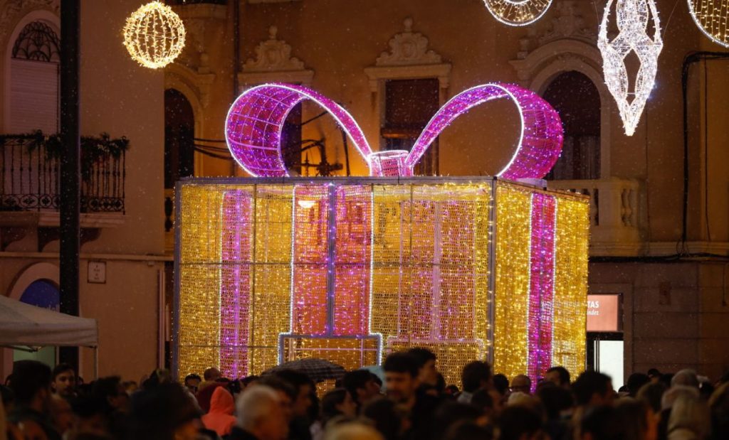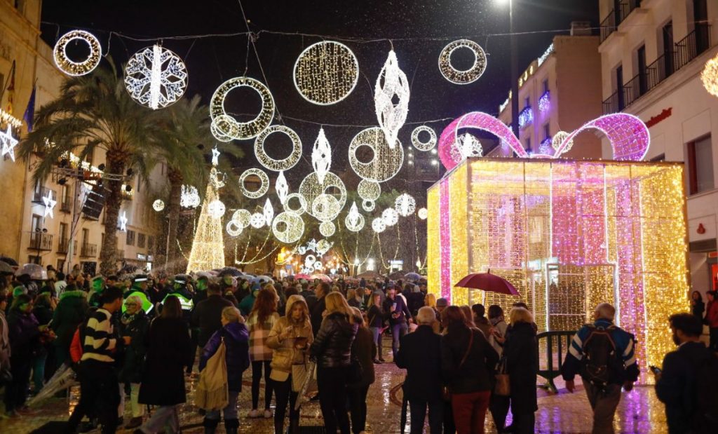 Elche da la bienvenida a la Navidad con un 32,85% más de inversión en iluminación decorativa en barrios y pedanías por parte de la Concejalía de Fiestas respecto a 2021. La magia de estas fechas en forma de vistosas luminarias ha puesto la nota de color en una tarde lluviosa en la cual, pese a todo, numerosos ilicitanos e ilicitanas han desafiado al mal tiempo y asistido al encendido del alumbrado, llevado a cabo en la Plaça de Baix sobre las 18:15 horas, en un acto que se ha convertido por derecho propio en un clásico navideño del municipio y en el que se ha reproducido una gran nevada.