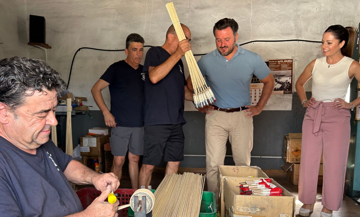 A su llegada el alcalde y la edil han sido recibidos por parte de los dueños de las instalaciones, Manuel y Fernando Ferrández, quienes les han guiado en una visita donde han podido conocer de primera mano la producción de los cohetes que se lanzarán en una noche tan única y especial para todos los ilicitanos, así como las palmeras, incluida la de la Virgen. Además, han tenido la oportunidad de participar en el montaje de una de esas palmeras que se lanzará el próximo 13 de agosto.