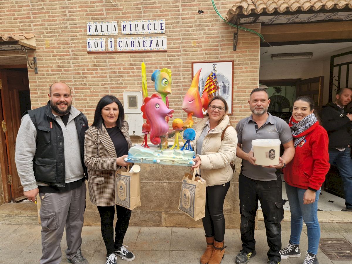 Una comitiva d’Alboraia ben equipada amb litres d’orxata artesana i fartons es va desplaçar al centre de València per a oferir un got bé fresquet de la benvolguda beguda de xufa als artistes fallers en ple muntatge dels monuments.