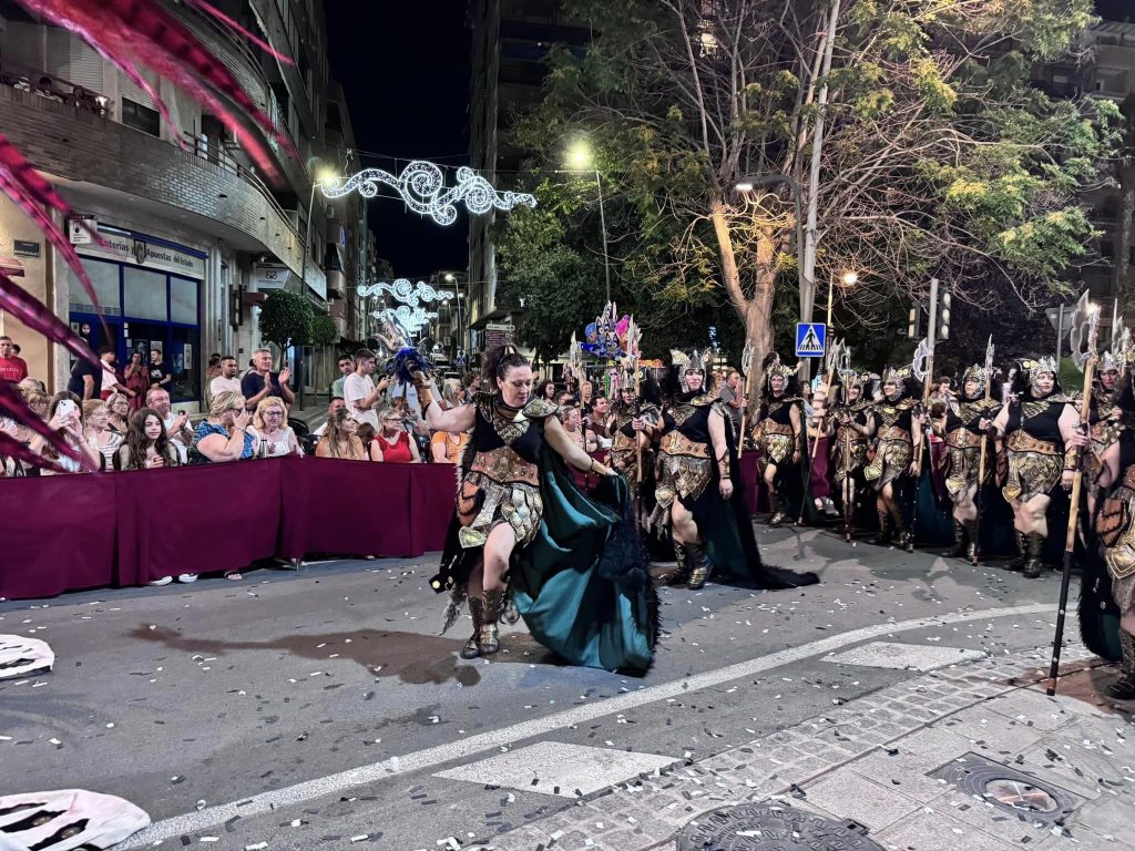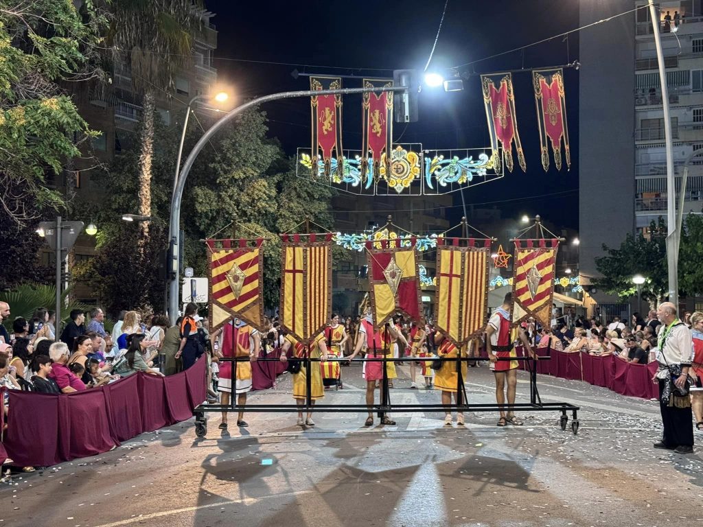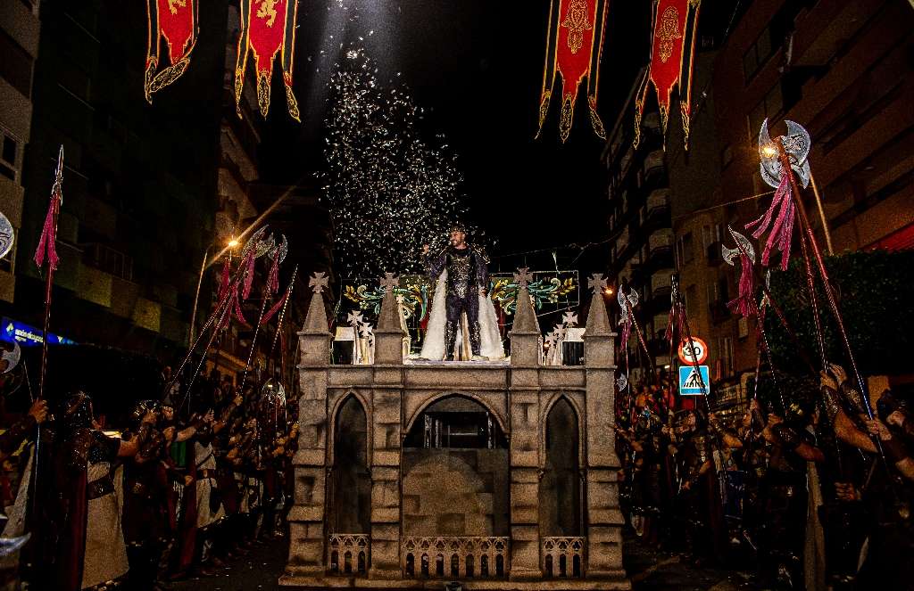 - La companyia Pirates Corsaris, que ostenta aquest any el regnat cristià, va tancar la desfilada amb un boat que representava l’actuació dels corsaris que sol·liciten les recompenses al Rei Cristià per defensar la Vila Joiosa dels atacs moriscos