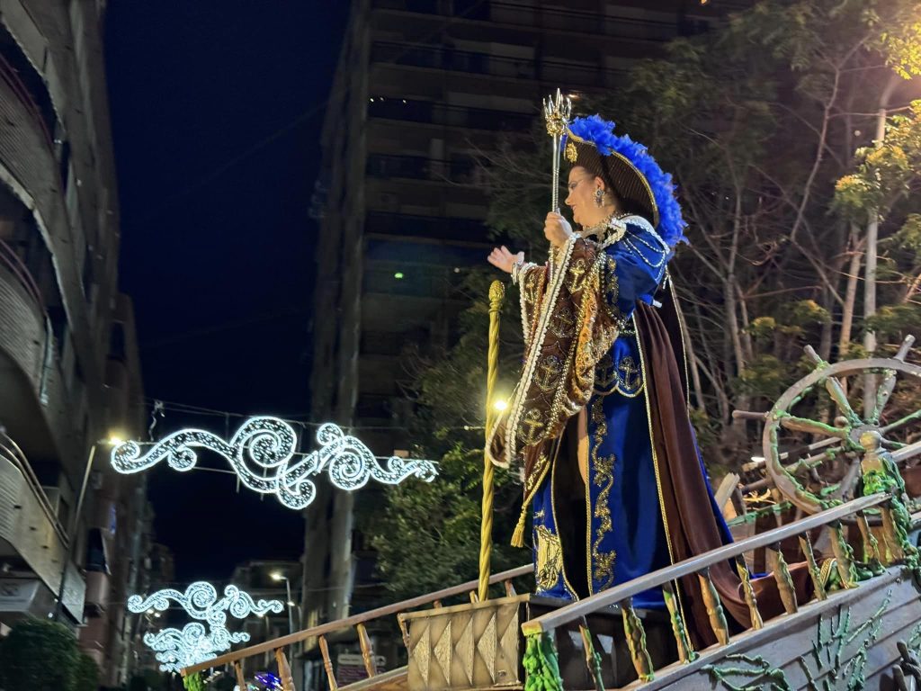 La companyia Pirates Corsaris, que ostenta el regnat del bàndol cristià, va tancar ahir a la nit la desfilada amb un boat que representava la vida dels corsaris que navegaven davant de la costa vilera al segle XVI i protegien la vila dels atacs sarraïns. Escenes de la vida pirata i les recompenses del Rei Cristià pels seus èxits descriuen com servien el rei i el poble de la Vila Joiosa. El boato relata el pacte entre els corsaris i el Rei Cristià, a qui els corsaris li ofereixen la seua ajuda per defensar el poble dels atacs barbarescos obtenint la patent de cors, que li permetia atacar les naus enemigues a canvi de lliurar part del botí al monarca. Per tant, es representa l’acte de l’Alijo amb l’ambaixadora contrabandista, Claudia Pérez, que aquesta vesprada debutarà al càrrec a l’Ambaixada Contrabandista. A més, van desfilar les tropes defensores i els tresors que s’obsequien al monarca. La desfilada va traslladar l’espectador al segle XVI quan era habitual la proliferació de corsaris, també entre els nadius. Entre la cort reial, va destacar el pare del Rei Crisità, que també va ostentar el càrrec de Rei Cristià el 1986. El Rei Cristià, Maties Romà, va tancar la desfilada sobre la seua carrossa.