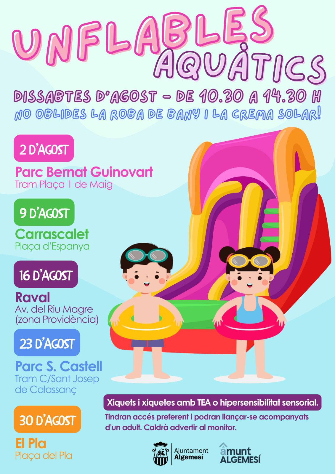 L’Ajuntament d’Algemesí recupera este estiu els unflables aquàtics gratuïts, una de les activitats més refrescants per als xiquets i xiquetes d’Algemesí, i que s’instal·laran, cada dissabte d’agost, en diferents barris de la ciutat.