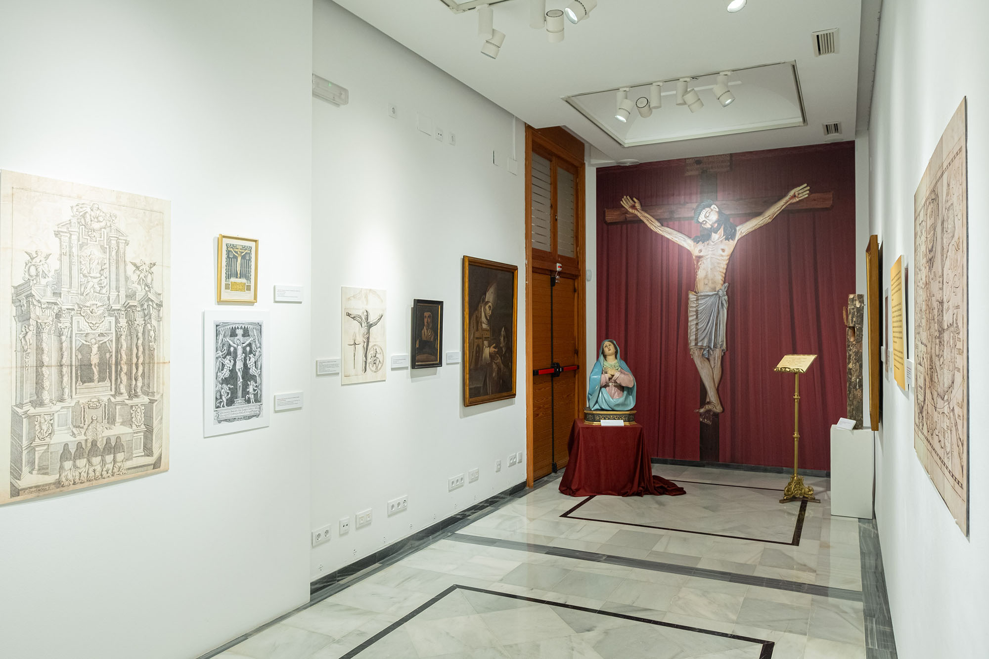 La exposición recupera además testimonios gráficos de la antigua decoración del templo, como el gran retablo barroco de 1670, conocido a través de grabados, y bocetos de lo que fue el gran bocaporte que cerraba el altar mayor, obra de Vicente Salvador Gómez, destacado pintor barroco del siglo XVII. También se muestran óleos y calcografías que representan al Cristo solo o acompañado por santos valencianos estrechamente vinculados a su devoción.