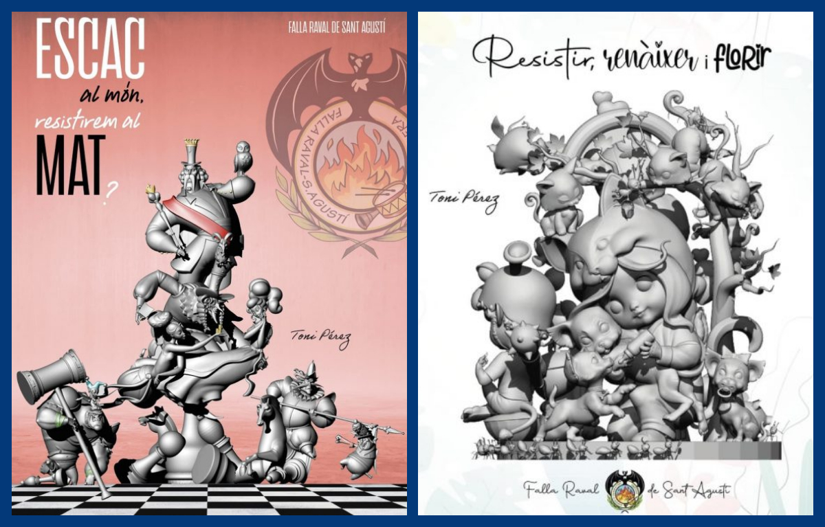 Toni Pérez és l´encarregat de realitzar les dos falles. La falla gran porta com a lema «Escac al món, resistirem al mat?» i la falla infantil porta com a lema «Resistir, renàixer i florir«.