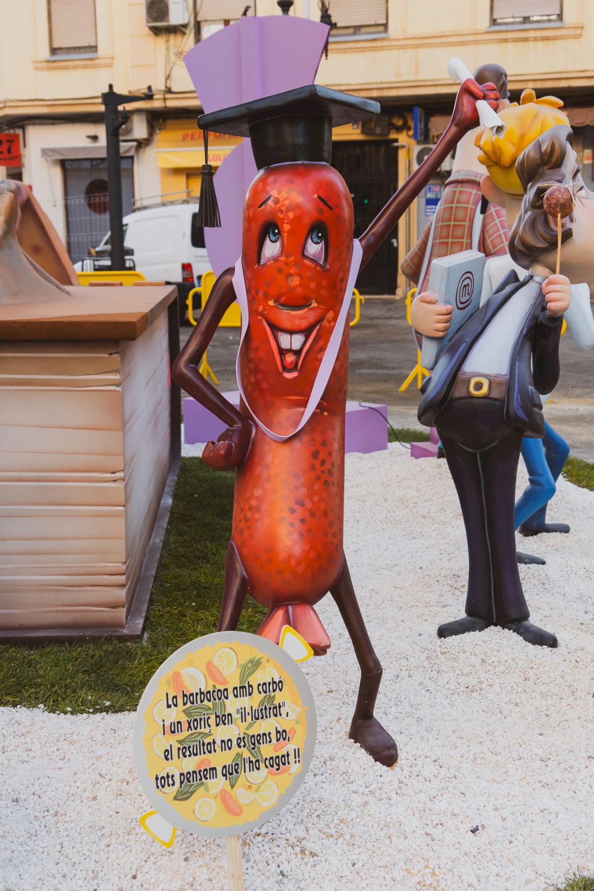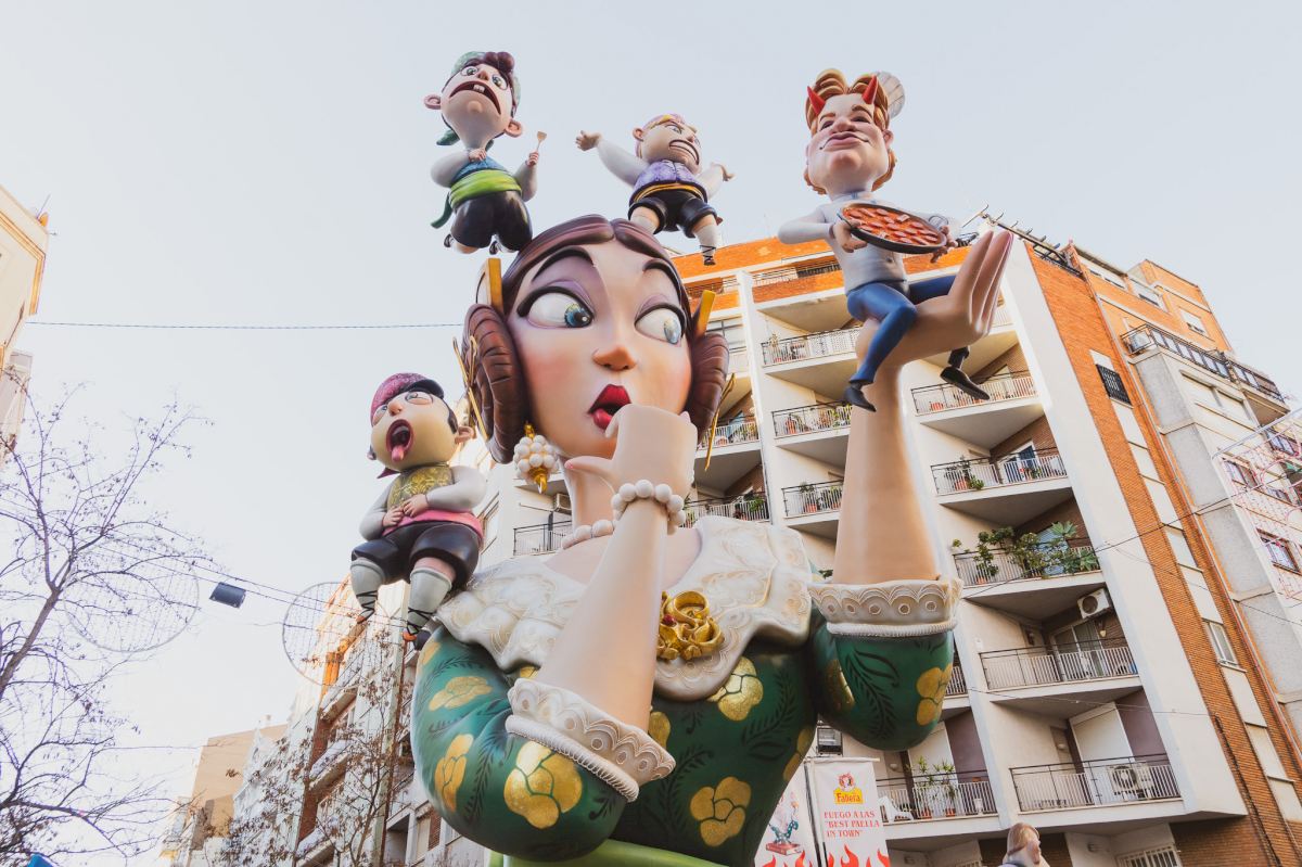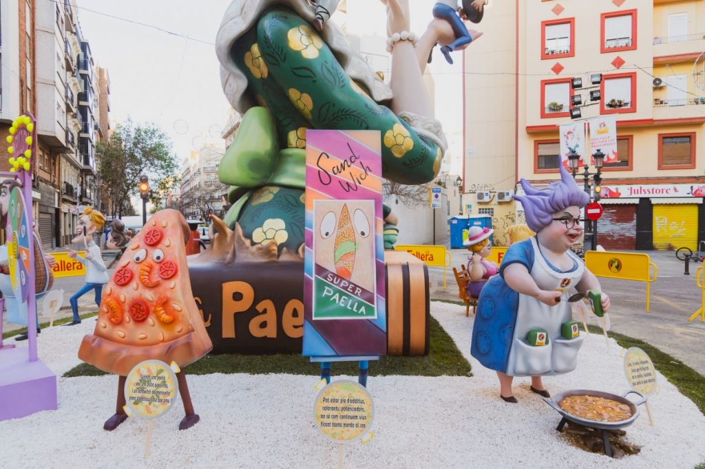 Se trata del monumento ‘Arrocidades que espanten a la fallera’, con la colaboración de de Arroz La Fallera con la fiesta y la tradición valenciana, que utiliza la sátira y el arte fallero para denunciar las barbaridades culinarias que se han perpetrado, a lo largo y ancho del planeta, contra el plato más vapuleado de la gastronomía española: la paella.