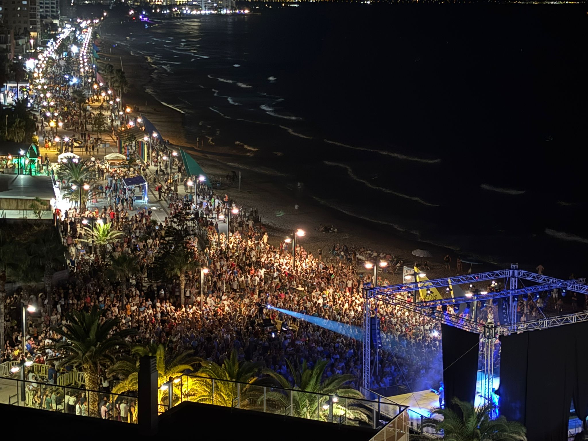 A las 23:00 horas, comenzó el esperado espectáculo tributo a la mítica banda Mecano. Canciones icónicas como “Hijo de la Luna”, “Cruz de navajas” o “Mujer contra mujer” hicieron vibrar al público congregado en el paseo Marítimo del Mediterráneo, que vivió una de las noches más multitudinarias del verano en el municipio.