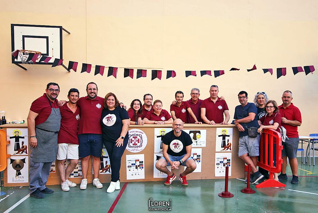 Miembros de la Cofradía, claustro de profesores y PAS unidos, colaborando, trabajando duro y disfrutando de un día lleno de solidaridad en el que todas las actuaciones y la mayoría de lo ofrecido, ha sido generosamente donado.