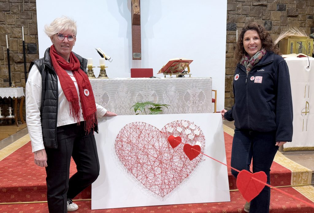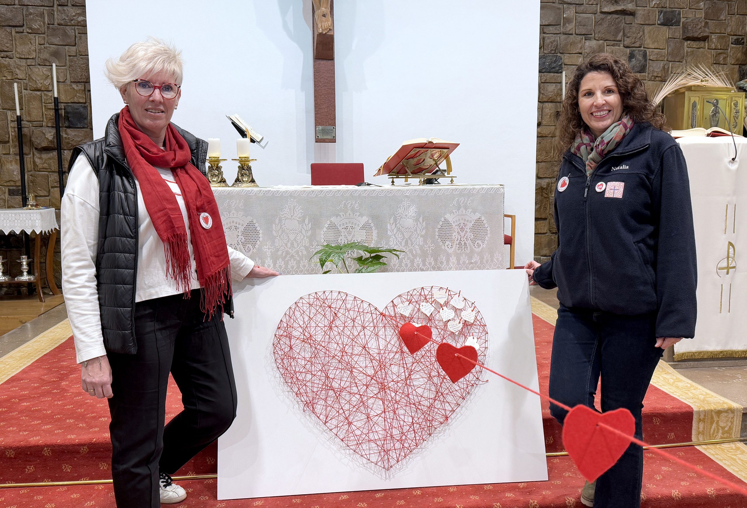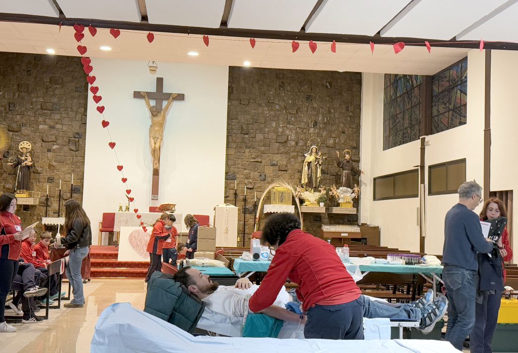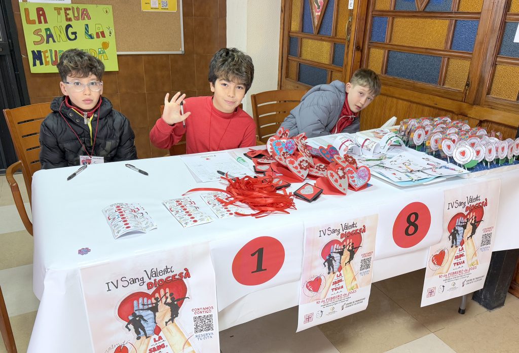 «Sang Valentí Diocesà« va más allá de las donaciones de sangre, es todo un proyecto que envuelve e implica a toda la comunidad educativa, desde infantil hasta ciclos formativos y FP. Los alumnos de infantil han trabajado la decoración, que cubre de corazones el centro de extracciones improvisado en el templo y en el que destaca la guirnalda que recorre el techo y termina en el corazón tejido de hilo en el centro del altar “recordando que damos sangre, damos vida, al igual que Él dio su vida por nosotros”, señala Natalia Montaner, coordinadora del proyecto en el centro escolar.
