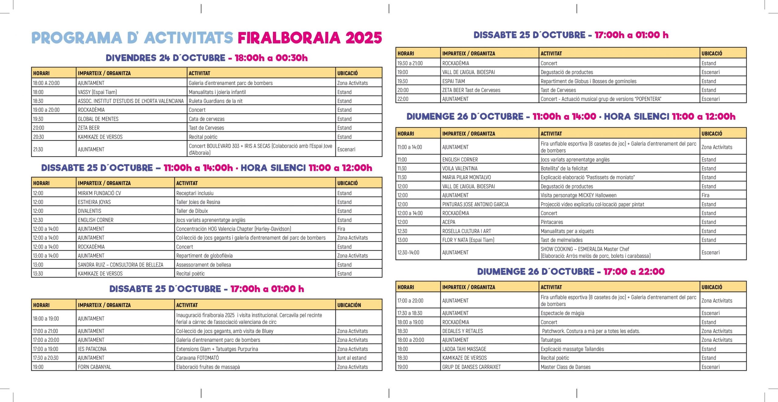 Alboraya se prepara para vivir la novena edición de Firalboraia, su cita anual con el comercio, la gastronomía y la artesanía y local, que tendrá lugar del 24 al 26 de octubre en el Paseo de Aragón. El evento volverá a ser un gran espacio de ocio y promoción comercial con una programación extensa y diversa diseñada para todos los públicos, además de la zona gastronómica.