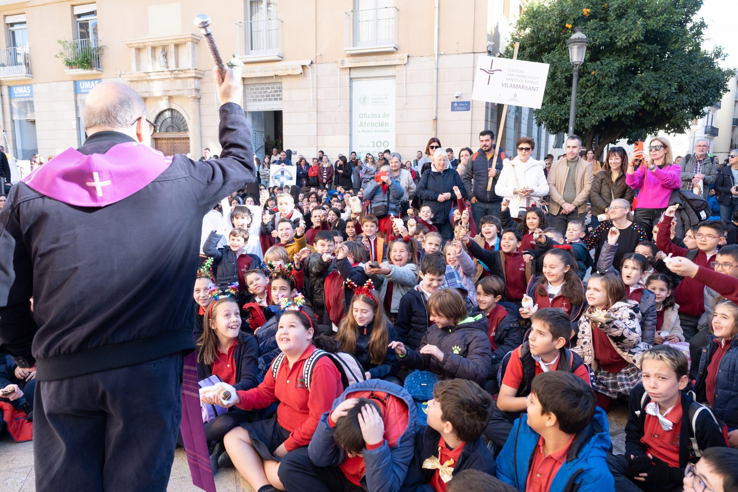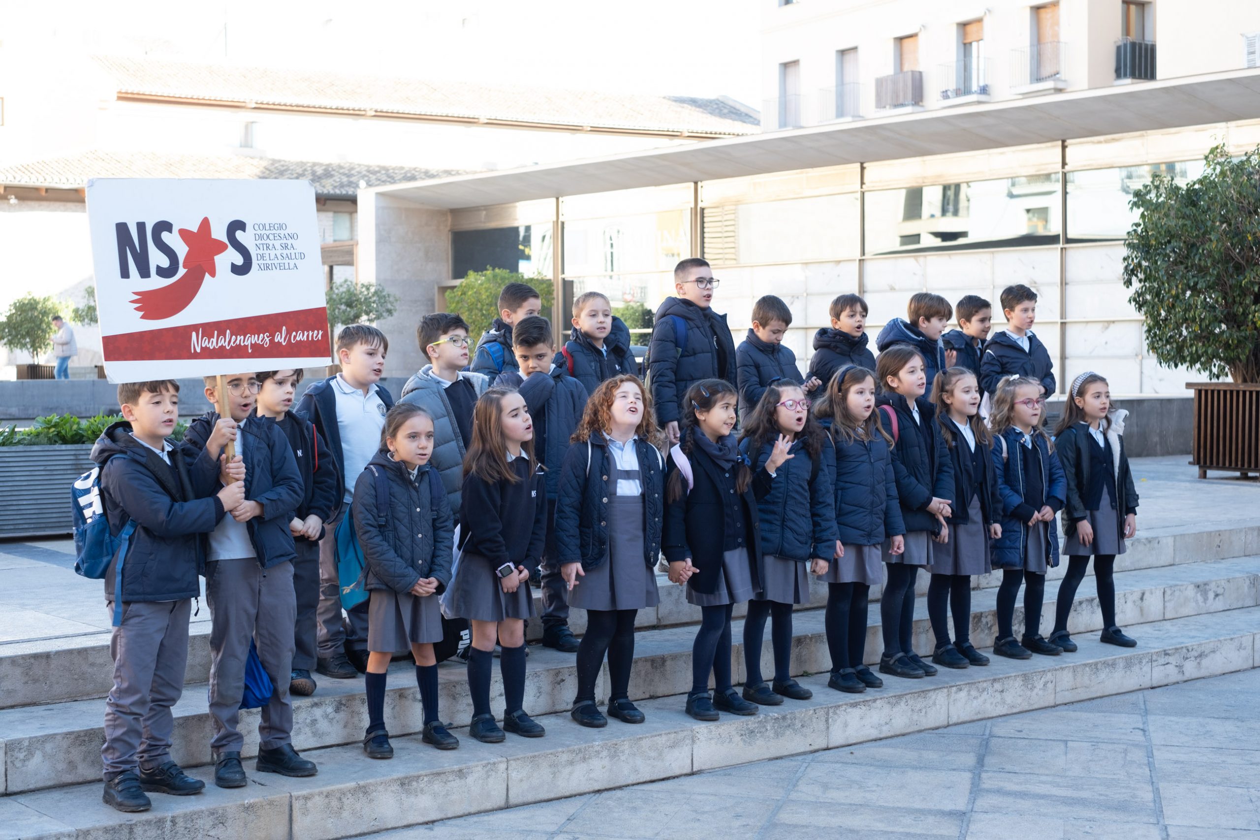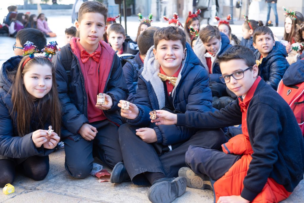 A mediodía han regresado de nuevo a la plaza del Palau donde han ofrecido un villancico común y han sido bendecidas las figuras del Niño Jesús que los escolares llevaban.