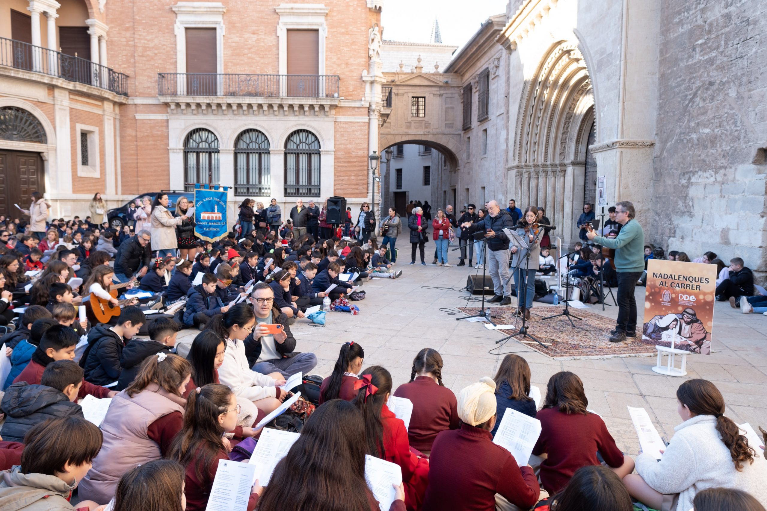 Más de 1.300 niños y niñas de colegios públicos, diocesanos y concertados-privados han participado este viernes en la XVI edición de les “Nadalenques al Carrer”, un festival de villancicos que ofrecen por las calles del centro histórico de Valencia para acercar la Navidad a través de la música.