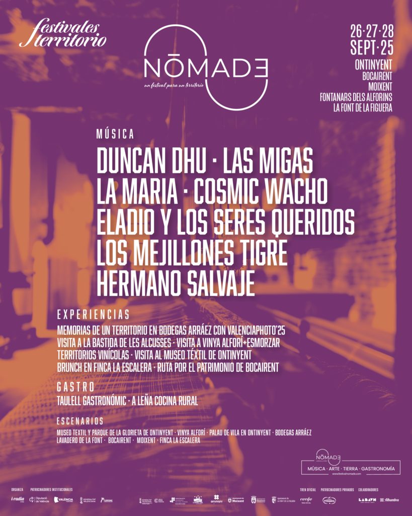 Este divendres s’inaugura la quarta edició del Festival Nómade, que se celebrarà durant el cap de setmana en la Costera i la Vall d’Albaida, amb una aposta que va més enllà de l’estrictament musical, oferint també gastronomia, cultura i patrimoni en un entorn natural i sostenible.