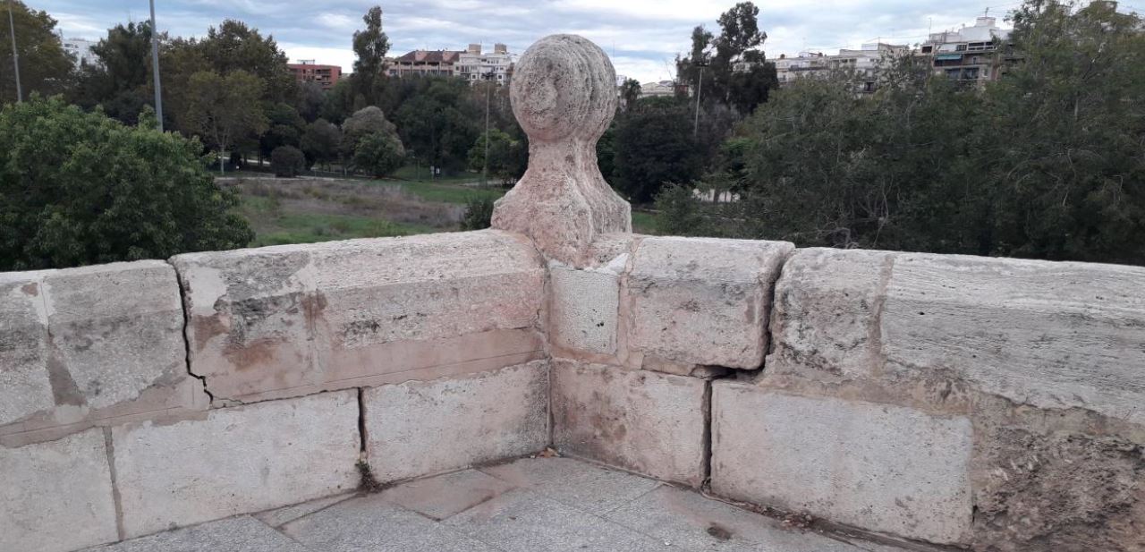 El Ayuntamiento de València ha finalizado los trabajos de rehabilitación del pretil del río ubicado en la esquina izquierda de la explanada de las Torres de Serranos, que presentaba fisuras y desprendimiento del mortero en la unión de los sillares.