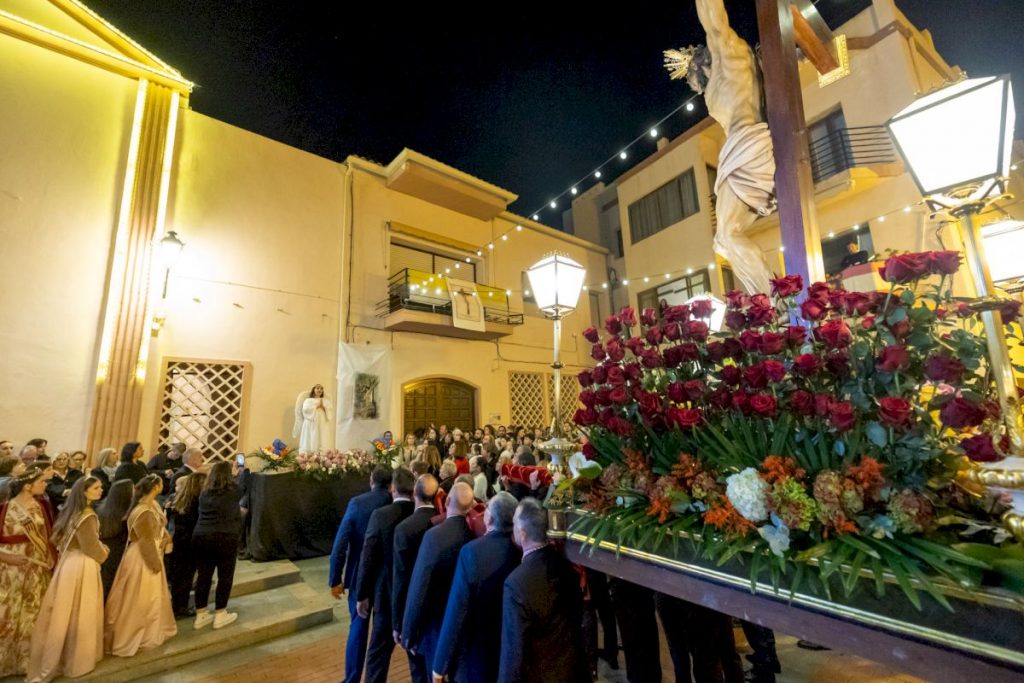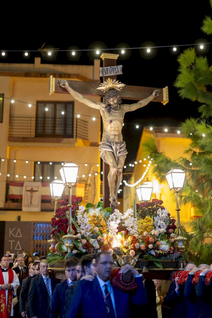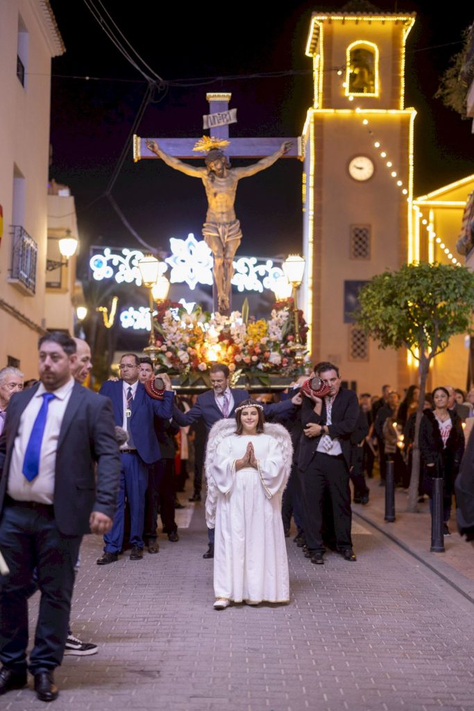 Por la tarde tuvo lugar la procesión en honor al Santísimo Cristo del Buen Acierto, al término de la cual la niña Marina Pérez Martínez fue la encargada de recitar la tradicional embajada, uno de los momentos más emotivos de la jornada. La velada concluyó con una mascletà nocturna, también a cargo de Pirotecnia del Mediterráneo, que puso el broche de oro a las fiestas de 2025.