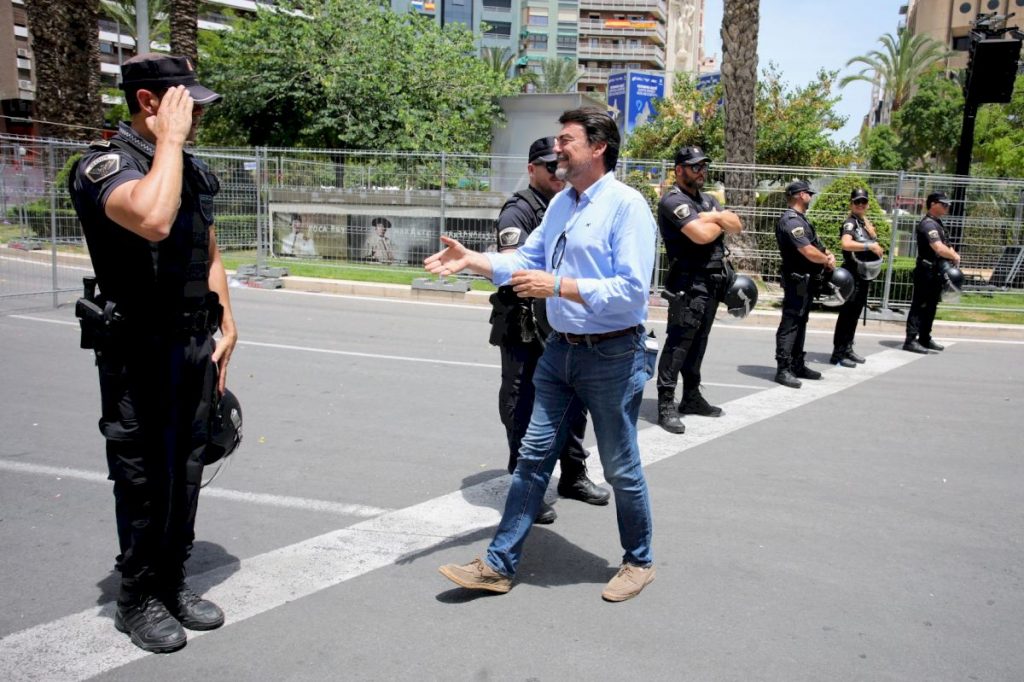 El primer edil ha estado acompañado por la concejala de Fiestas, Cristina Cutanda; integrantes de la Corporación Municipal; la presidenta de la Federació de Fogueres, Toñi Martín-Zarco; las Belleas del Foc, Belén Mora e Inés Rosado, y sus respectivas Damas de Honor, entre otros invitados. Este martes 20 de junio será la alicantina Pirotecnia Hermanos Sirvent la que protagonice la tercera sesión del concurso.