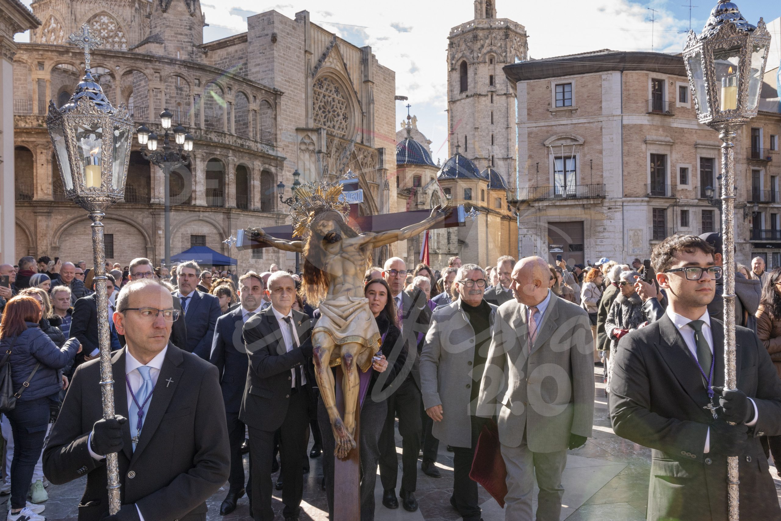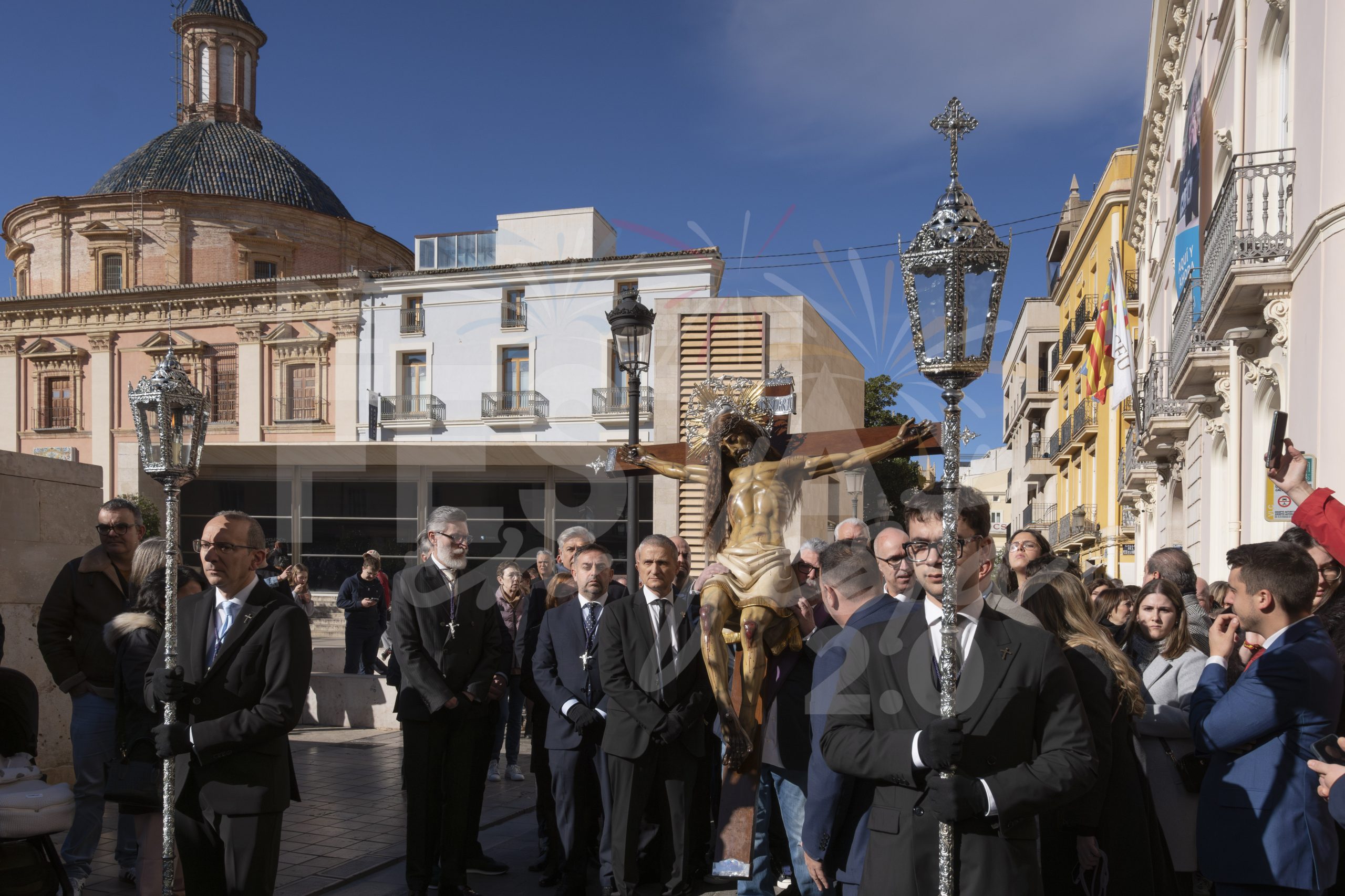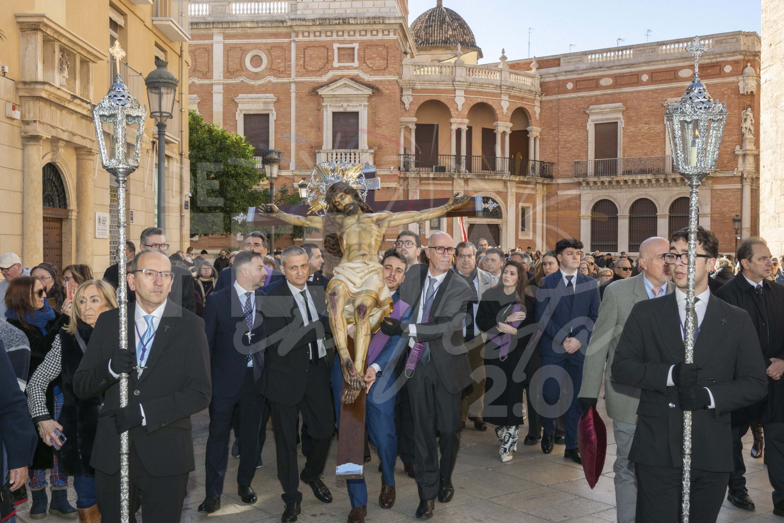Este domingo 8 de febrero el Santísimo Cristo del Salvador del Cabanyal ha visitado a la Virgen de los Desamparados y ha realizado una procesión por las calles de Ciutat Vella, en la celebración del 175 aniversario.