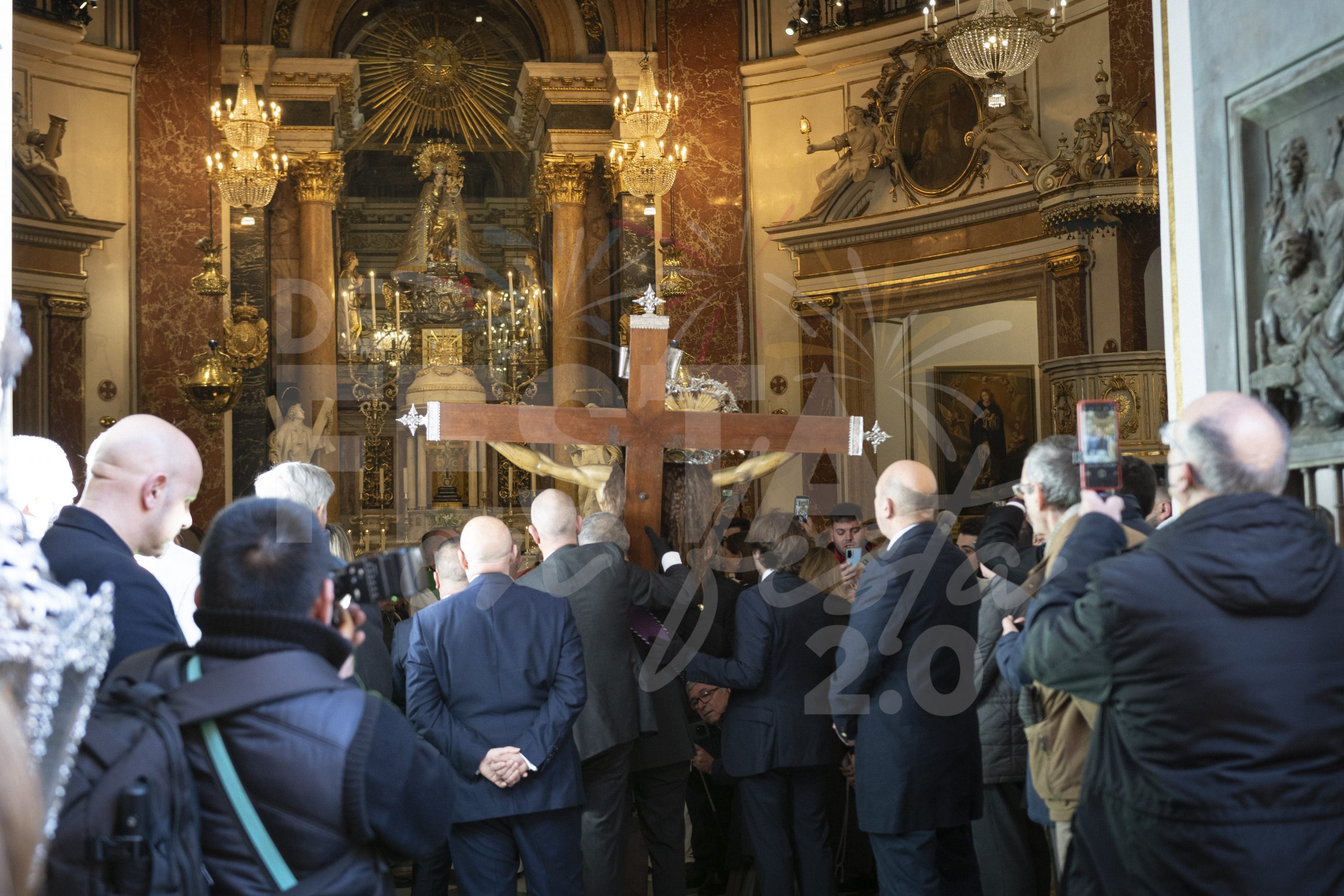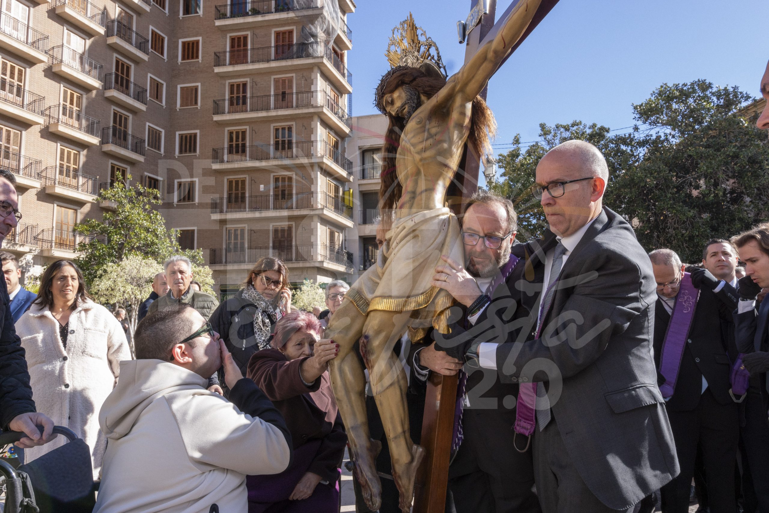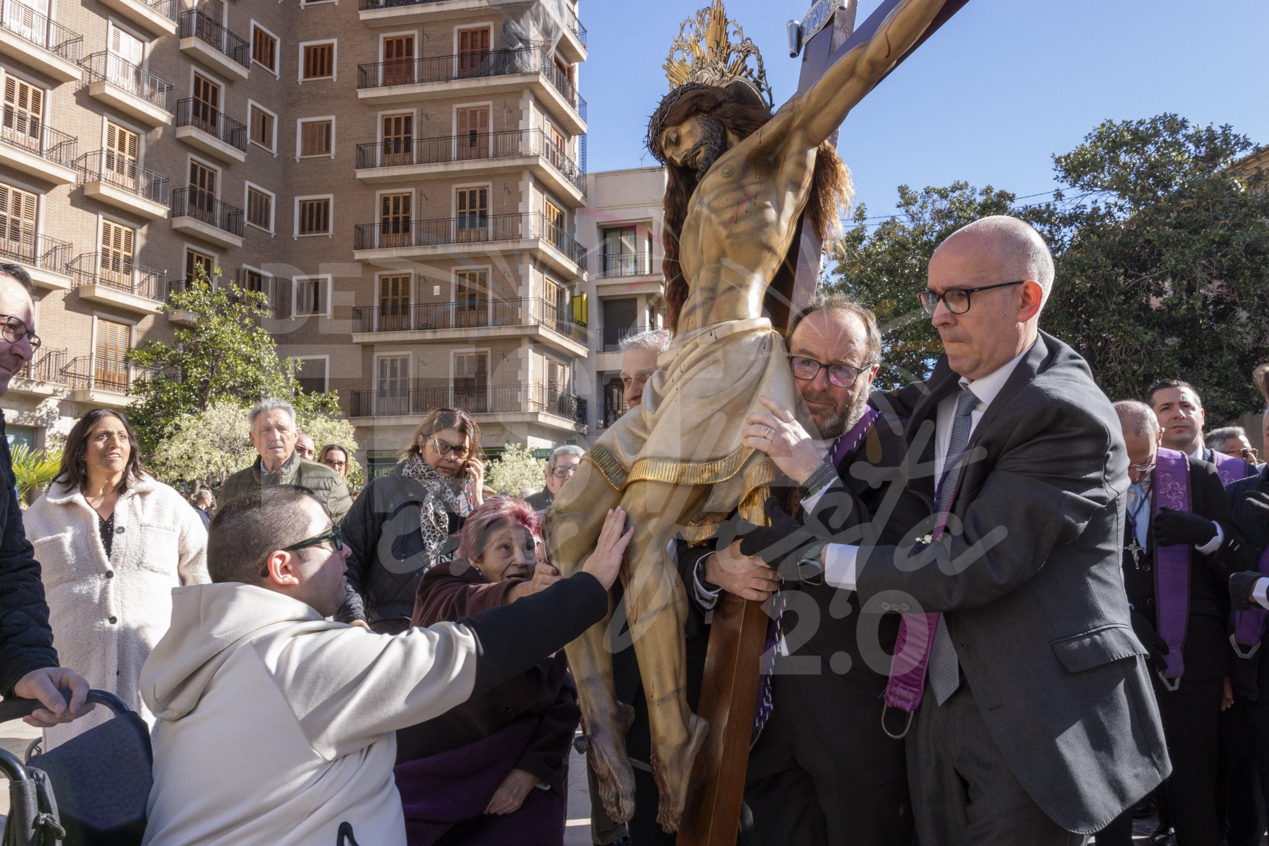 Este domingo 8 de febrero el Santísimo Cristo del Salvador del Cabanyal ha visitado a la Virgen de los Desamparados y ha realizado una procesión por las calles de Ciutat Vella, en la celebración del 175 aniversario.