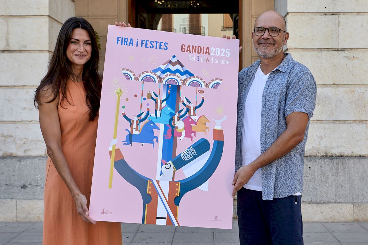 Aquest dijous s’ha presentat oficialment el cartell anunciador de la Fira i Festes de Gandia 2025, en una roda de premsa que ha comptat amb la presència de la regidora delegada de Fira i Festes, Balbina Sendra, i de l’autor de l’obra, l’artista gandienc Daniel García.