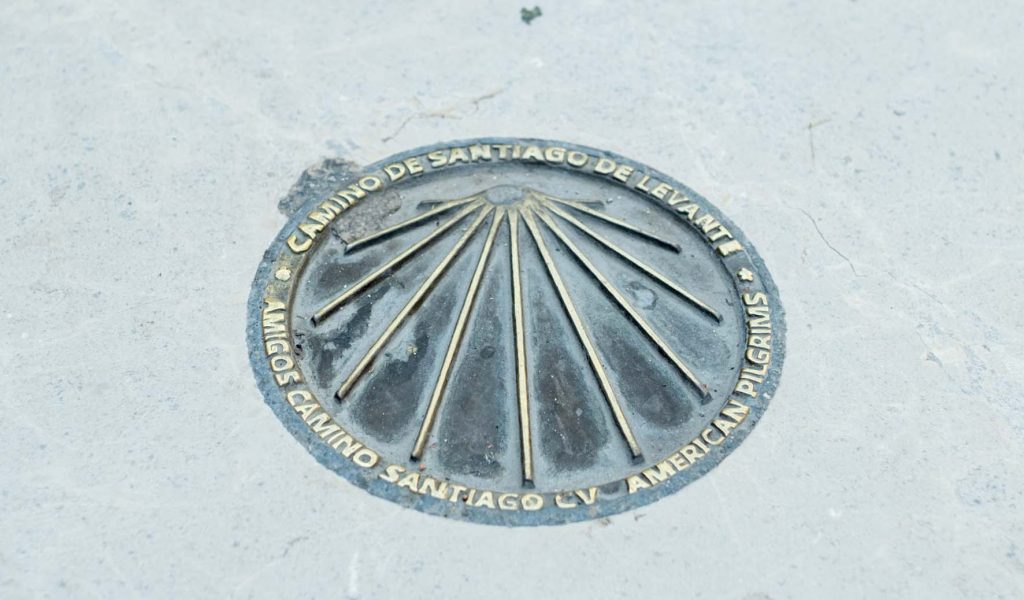 Hoy la Catedral también es el punto de arranque del Camino de Levante hasta Santiago. Una señal típica del Camino lo así lo recuerda.