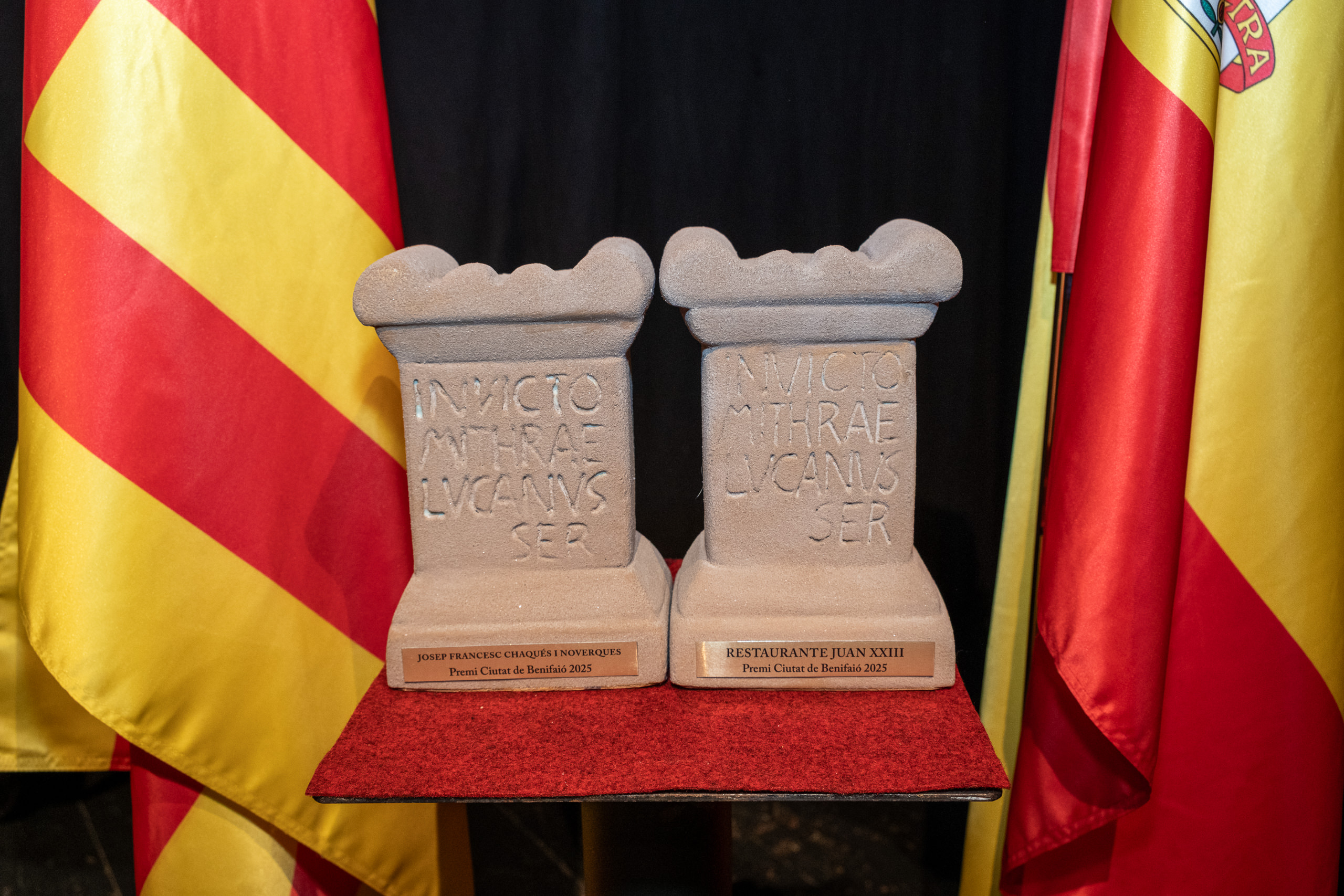 La alcaldesa de Benifaió Marta Ortiz acompañada por los portavoces políticos de los grupos representados en el consistorio, hizo entrega de los galardones que han recaído en su mención de persona física en el vecino del municipio Josep Francesc Chaqués i Noverques y en cuanto al premio que destaca a una entidad, colectivo o empresa local en esta edición recibió el premio el Restaurante Juan XXIII. La alcaldesa destacó que ambos premiados “son merecedores de esta distinción por el trabajo constante y dedicación cada uno en su ámbito profesional, unos premios de los cuáles los vecinos nos tenemos que sentir orgullosos de su continuidad, este año alcanzando ya su novena edición”.