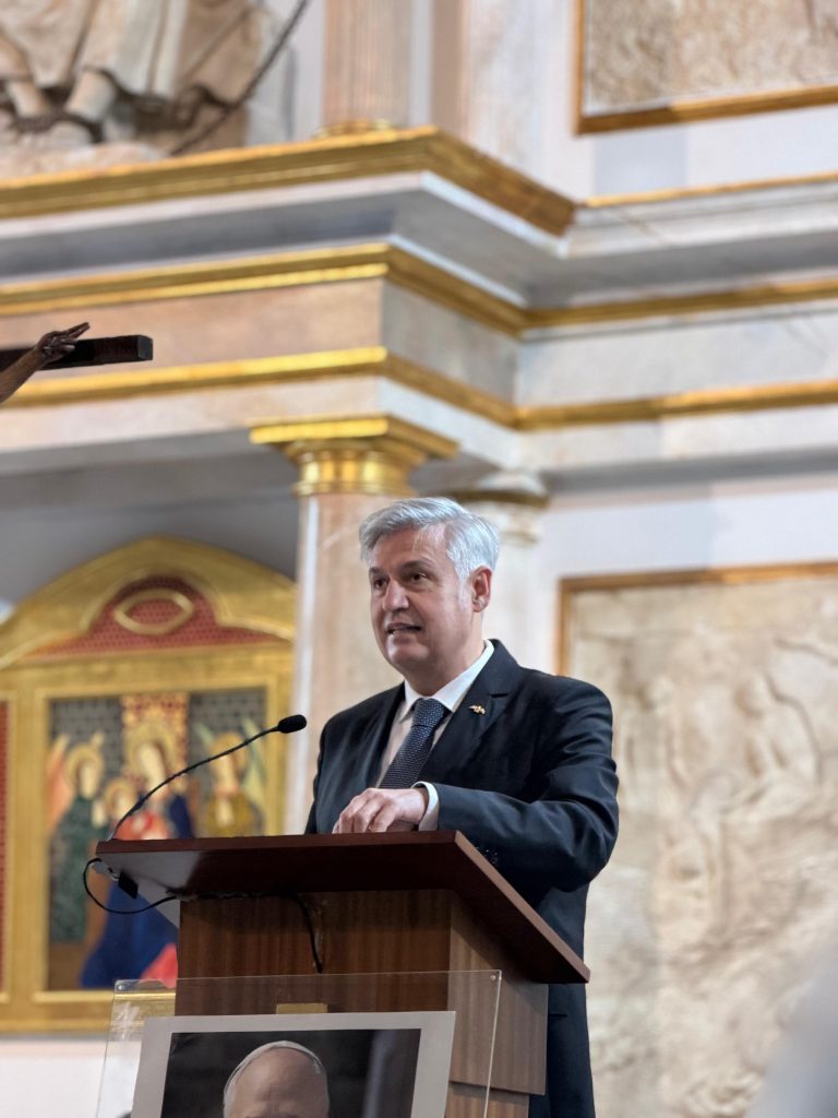 L’acte, organisat per l’associació cultural Via Augusta – Camí de Sant Vicent Màrtir, ha reunit a autoritats, representants d’entitats culturals, fidels i devots del Sant, en un ambient de profunda solemnitat i emoció. En les seues primeres paraules, Navarro Raga ha volgut agrair la llabor d’esta associació i, de manera especial, de la seua presidenta Paqui Llosa Clausich, “per més de vint anys de treball constant per a mantindre viva la memòria de Sant Vicent, reivindicar la seua figura i recuperar l’esplendor del lloc sant que va acollir la seua sepultura”.