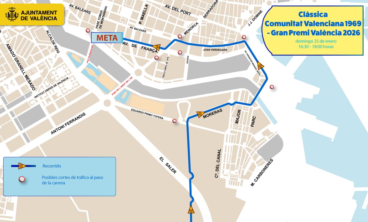 València volverá a ser escenario del ciclismo profesional con la celebración de la 42ª edición de La Clàssica Comunitat Valenciana 1969 – Gran Premi València 2026, que se disputará este domingo, 25 de enero, y que estrenará un recorrido inédito entre La Nucia y la ciudad de València. La prueba, que abrirá el calendario ciclista profesional en Europa, partirá desde la Ciutat Esportiva Camilo Cano de La Nucia, donde a partir de las 11:00 horas tendrá lugar la presentación de equipos, y finalizará en la avenida de França de València, con llegada prevista entre las 16:30 y las 18:00 horas.