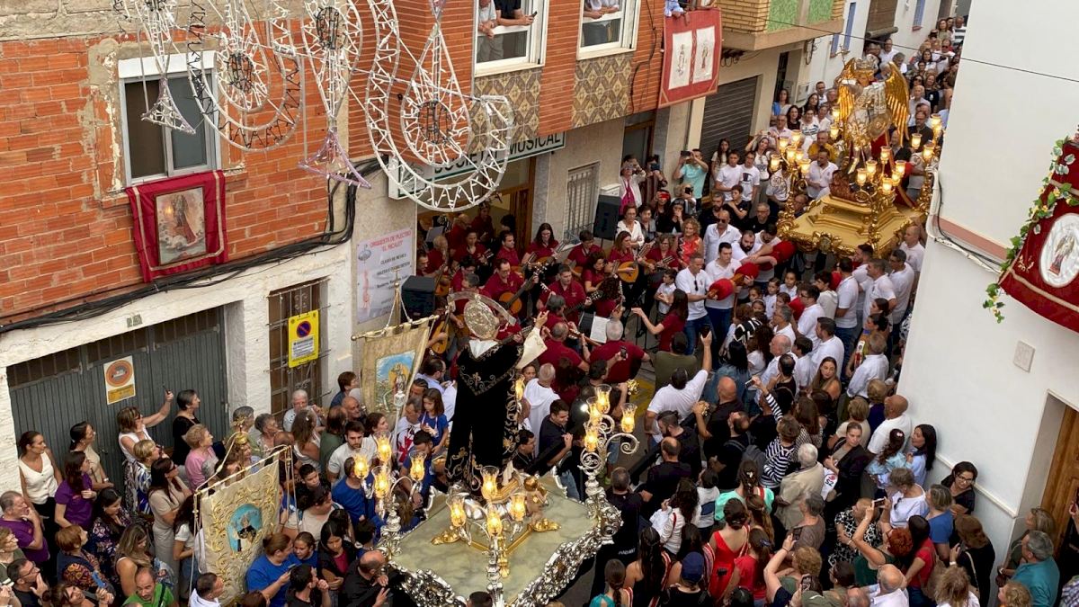 Un dels moments més emotius ha sigut la trobada entre les imatges de Sant Miquel i Sant Vicent Ferrer, enfront de la seu de l’Orquestra de Plectre “El Micalet”, que ha oferit una breu actuació en honor als dos sants.