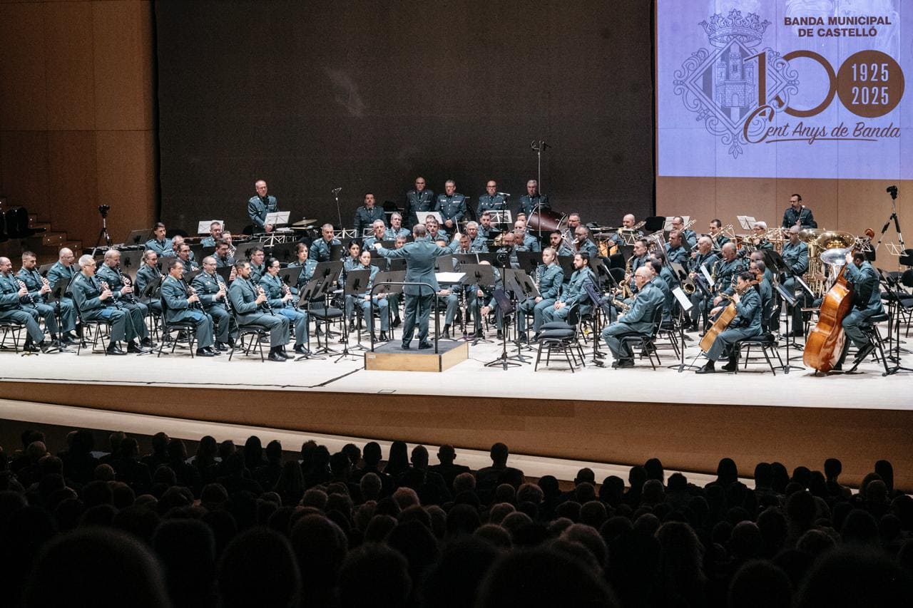 La alcaldesa de Castellón, Begoña Carrasco, ha presidido esta tarde el Concierto Extraordinario del Centenario de la Banda Municipal de Castellón, dirigida por José Vicente Ramón Segarra, que ha tenido lugar en Auditori i Palau de Congressos de Castelló. Una actuación que ha contado de manera especial con la Banda de la Unidad de Música de la Dirección General de la Guardia Civil. La alcaldesa ha estado acompañada por la concejala de Cultura, Maria España, así como otros concejales del Gobierno municipal.