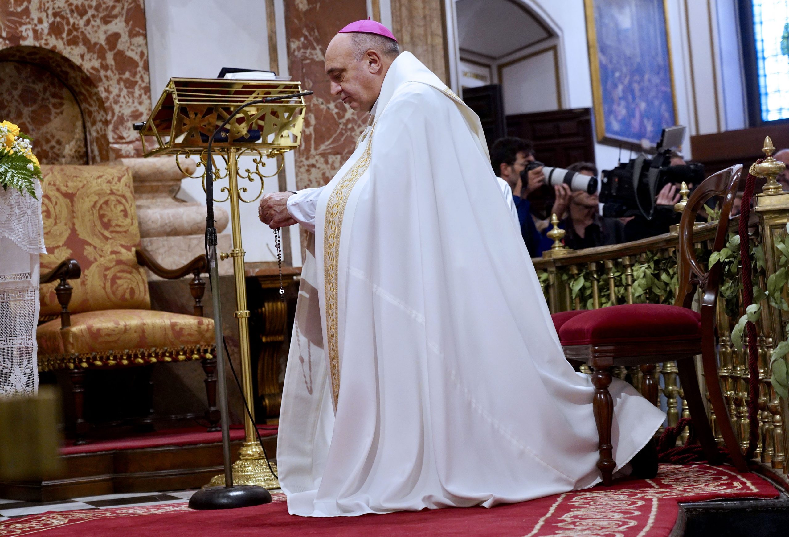 El Arzobispo de Valencia, mons. Enrique Benavent, ha presidido esta tarde en la Basílica de la Virgen de los Desamparados, el Santo Rosario en sufragio del Papa Francisco.