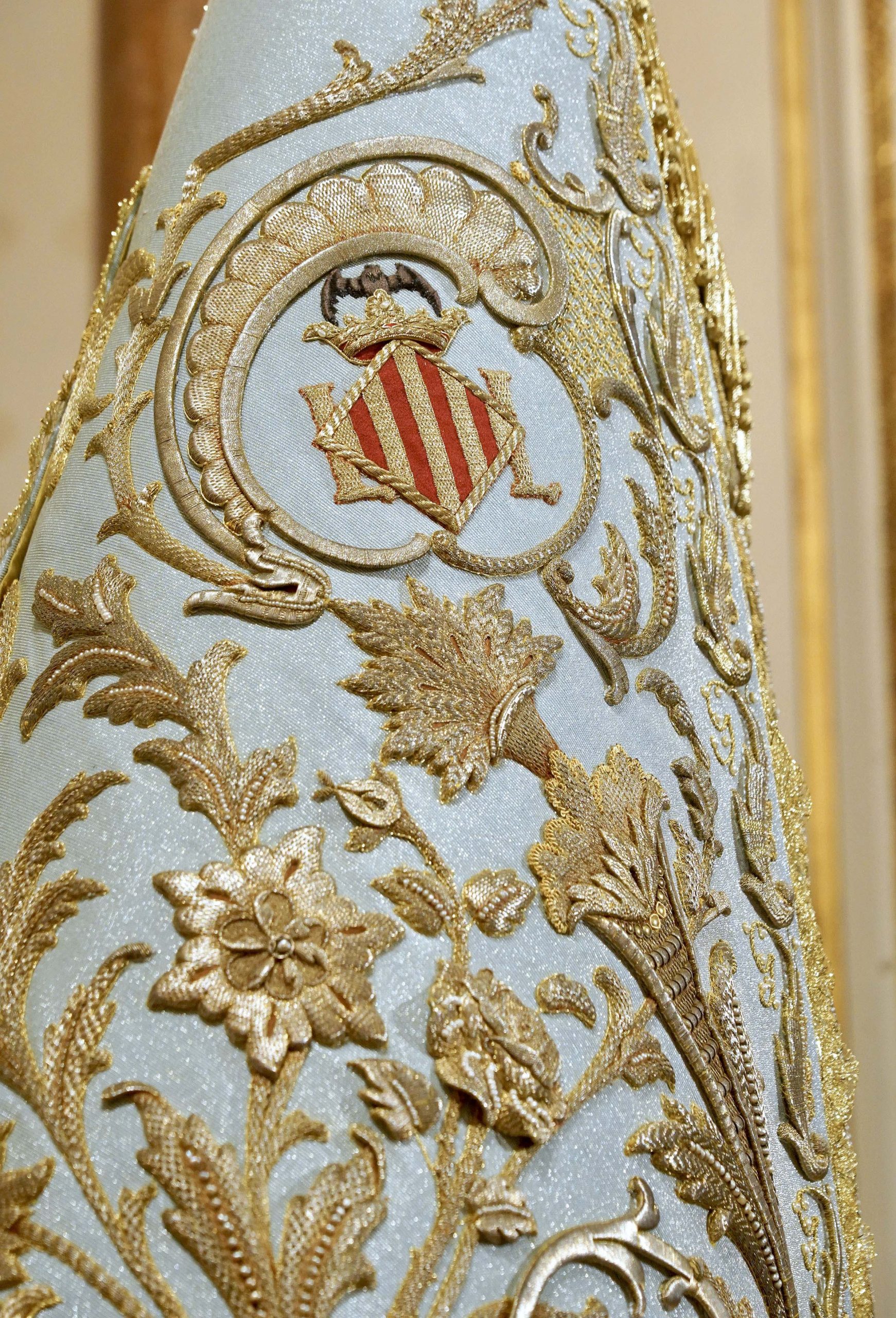 El restaurador valenciano ha comentado que “se trata de una obra de artesanía, tanto por el tejido, de tisú de plata fina sobre seda natural de color azul, como por el rico bordado en oro fino” y por las manos expertas que lo confeccionaron que fueron las de Hernández Doce, del taller de Hijos de Antonio Llana.