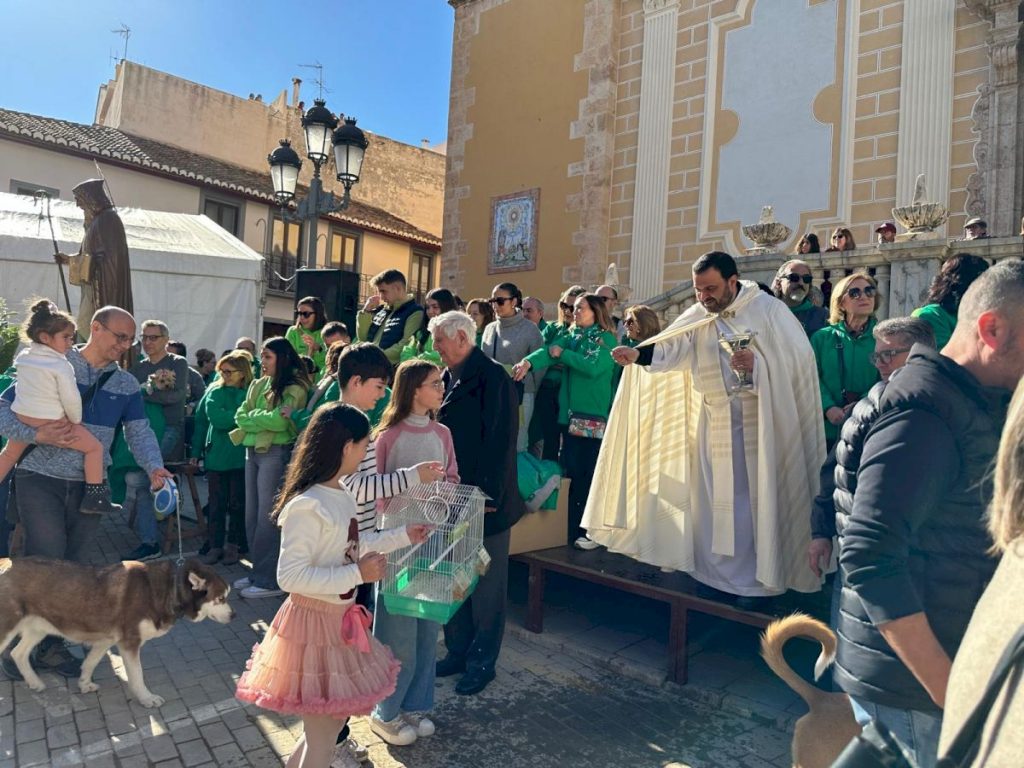 Tras la llegada de la imagen del Santo acompañada por los clavarios y tabales y dulzainas, se inició la bendición de todos los animales presentes. Los primeros en pasar fueron las caballerías y los carruajes, seguidos de perros, gatos, aves o tortugas, entre otros. Todos ellos recibieron de manos del clavario mayor, Francisco Aparicio y de Ana Benlloch, el agua bendita y el panecillo por su participación. Cerró el desfile Rogante, el haca que porta a San Antonio y que un año más emocionó a su propietario y también clavario, Javi Soriano.