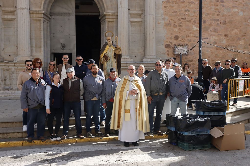 Precisamente mientras el párroco Guillermo Carrasco finalizaba la misa previa a la bendición y Protección Civil controlaba el inicio de la fila para las bendiciones, la Asociación para la Bendición de Animales de San Antonio se ocupaba de los últimos detalles: colocar la imagen del santo, organizar la fila para ser bendecidos, preparar los detalles para repartir entre los vecinos…