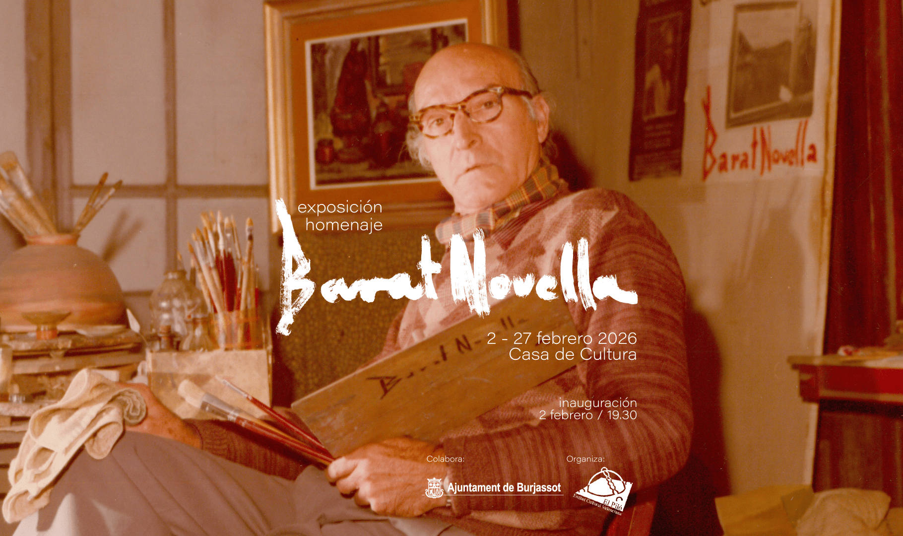 La Casa de Cultura de Burjassot acogerá, del 2 al 27 de febrero de 2026, la exposición homenaje dedicada a José Barat Novella, creador con una sólida trayectoria artística y docente en el ámbito cultural valenciano del siglo XX y con una trayectoria vital estrechamente vinculada a Burjassot. La muestra, que propone un recorrido por la obra y la trayectoria vital del creador valenciano, se inaugurará el lunes 2 de febrero, a las 19.30 horas y se podrá visitar en el horario habitual de la Casa de Cultura, de lunes a viernes, de 8.15 a 20.45 horas.