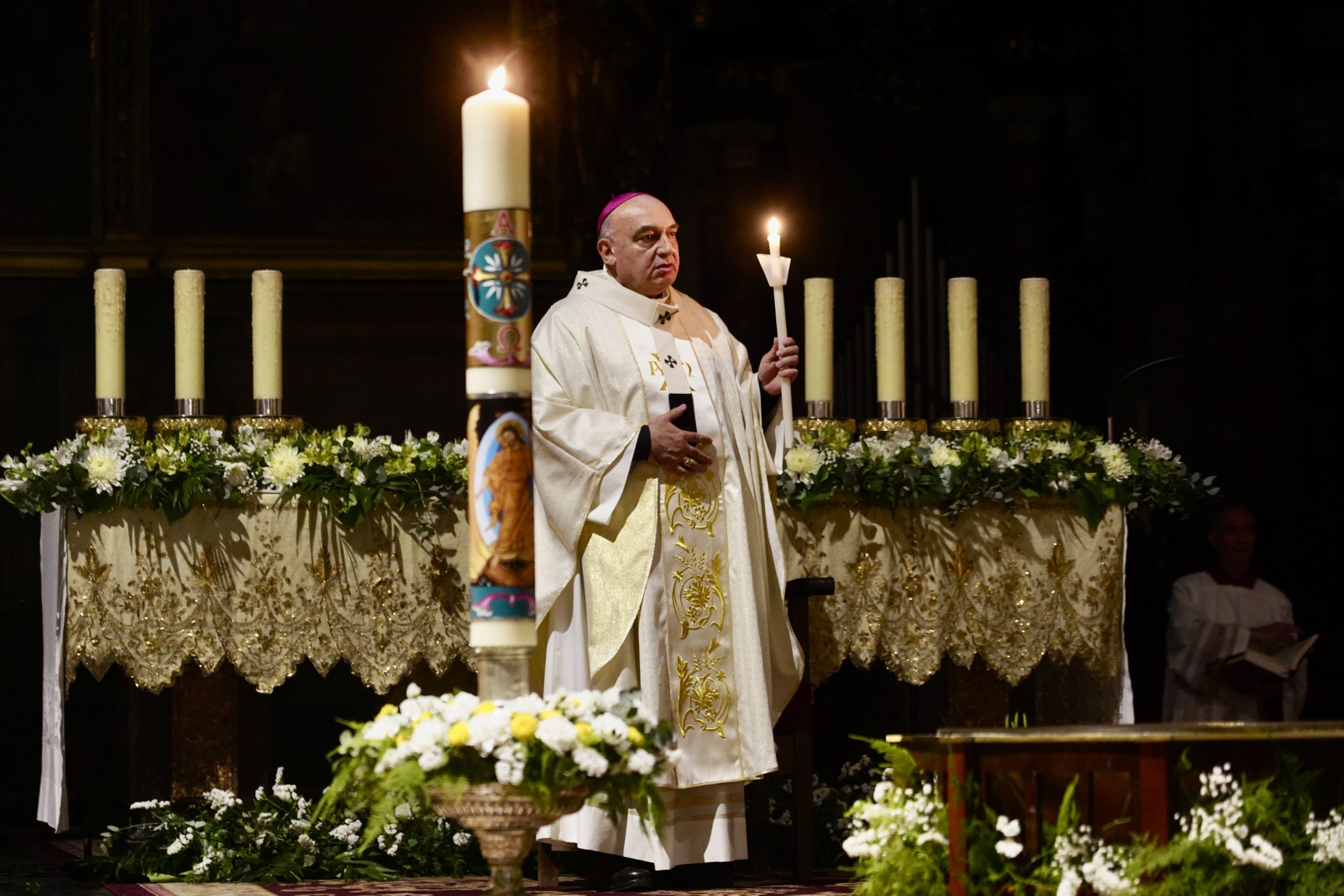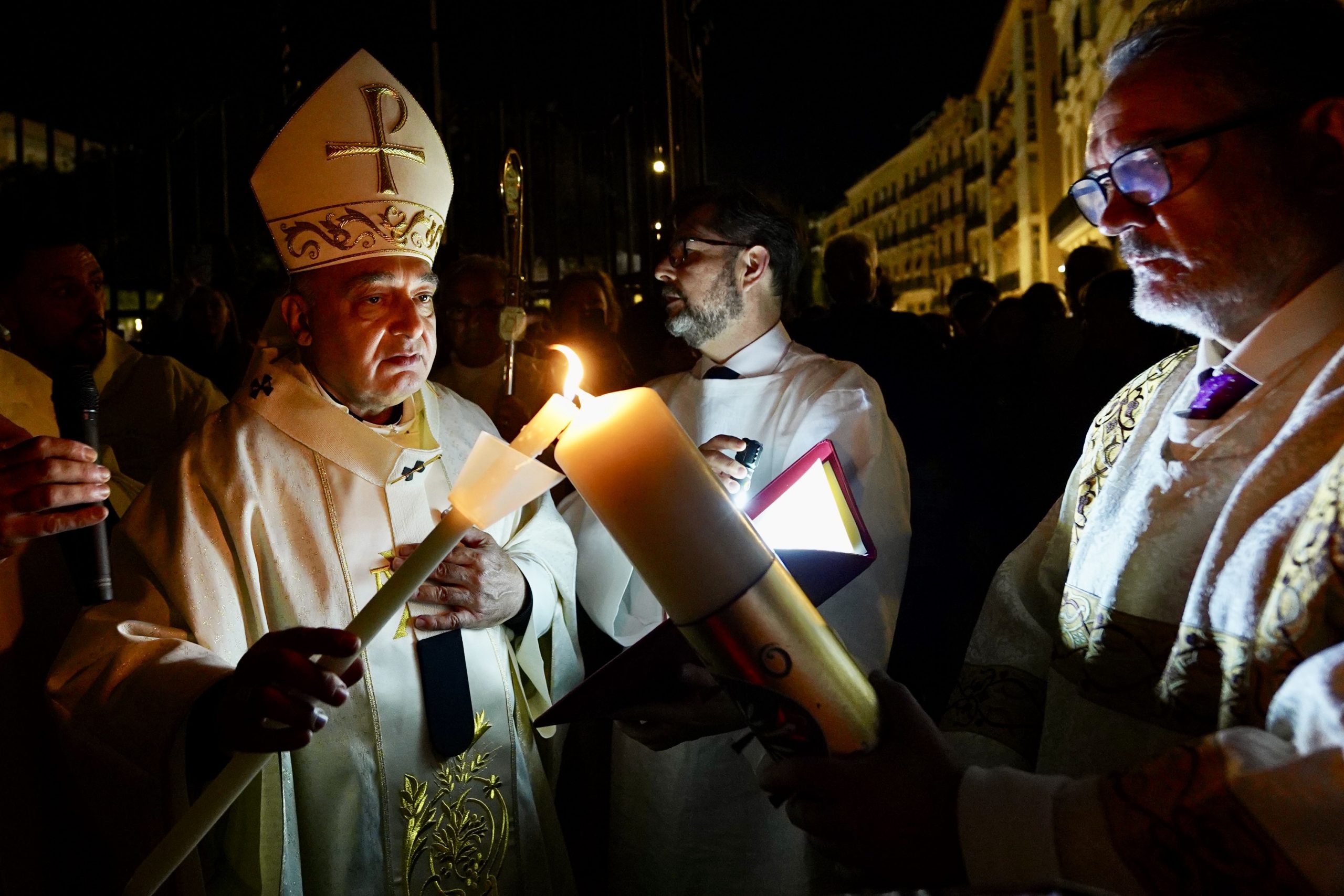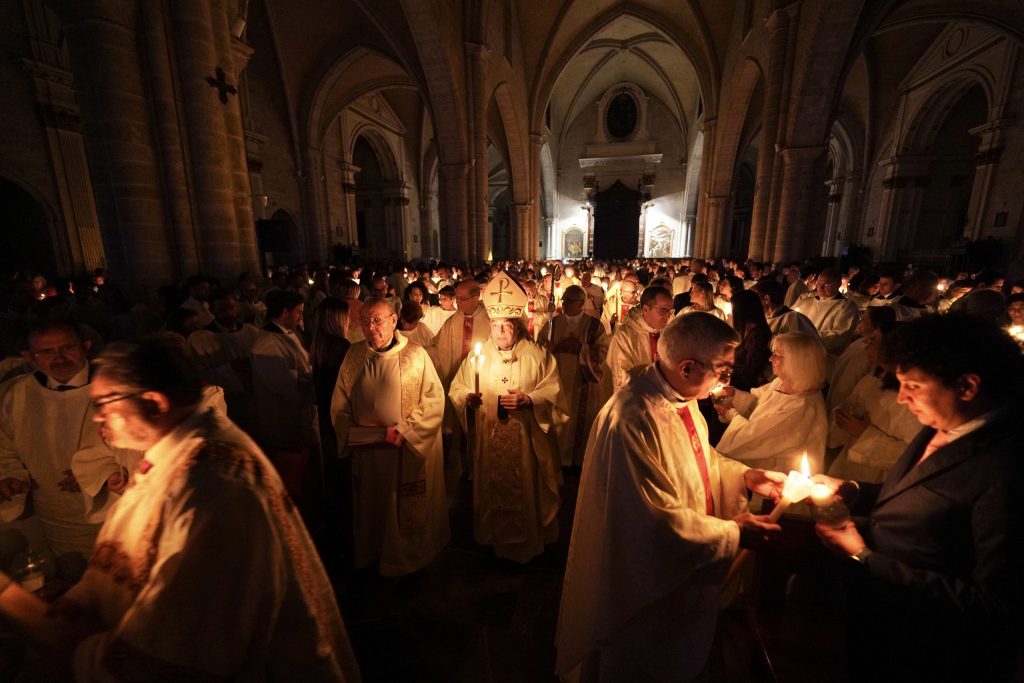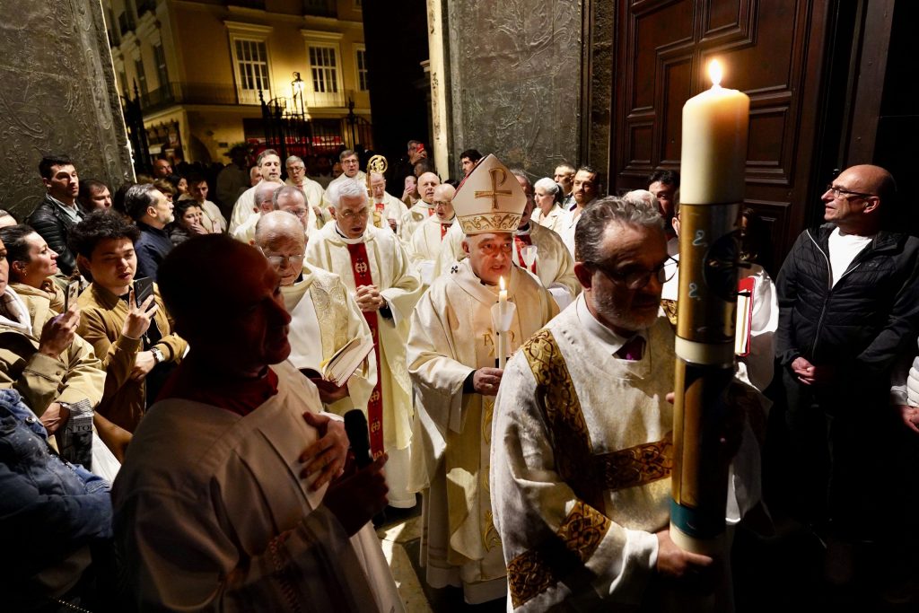 El arzobispo de Valencia, monseñor Enrique Benavent, presidió anoche la solemne Vigilia Pascual, en la Catedral de Valencia.