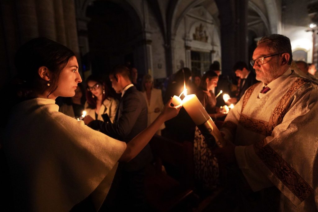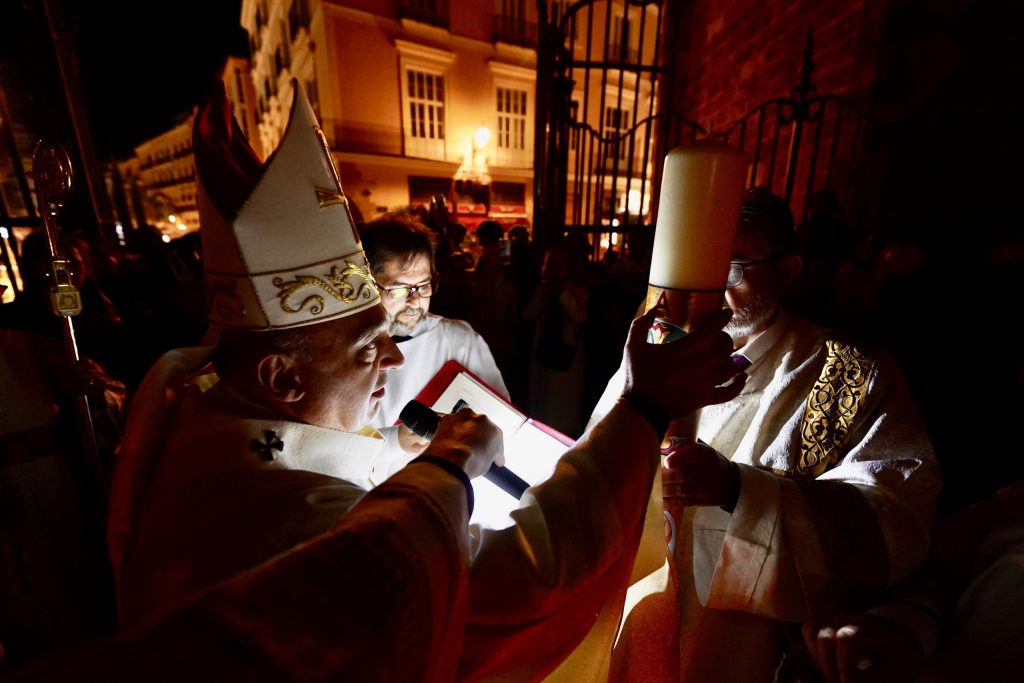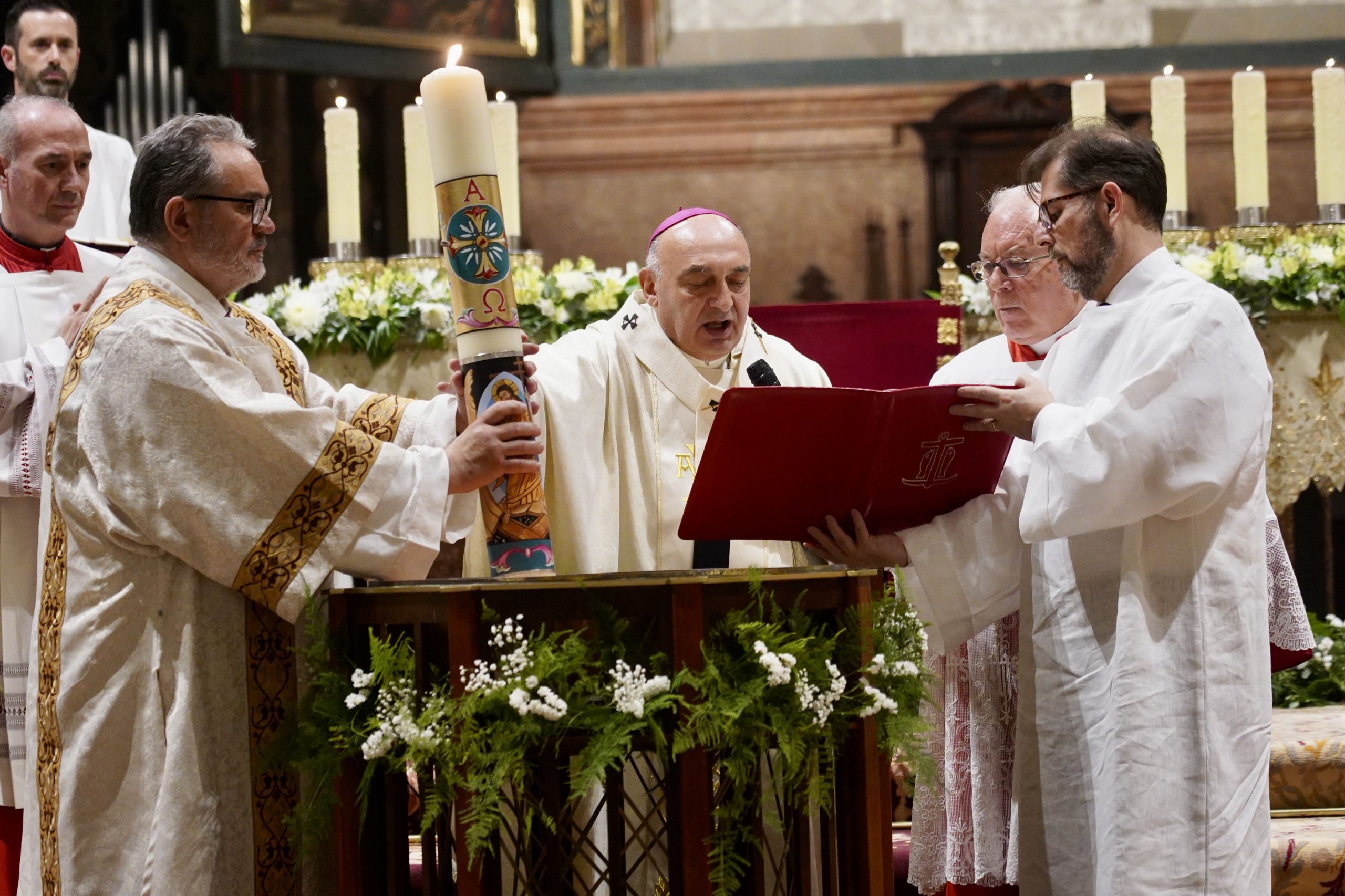 La celebración comenzó con la bendición del “nuevo fuego” en la Puerta de los Hierros de la Catedral y el posterior lucernario en el interior de la Seo.