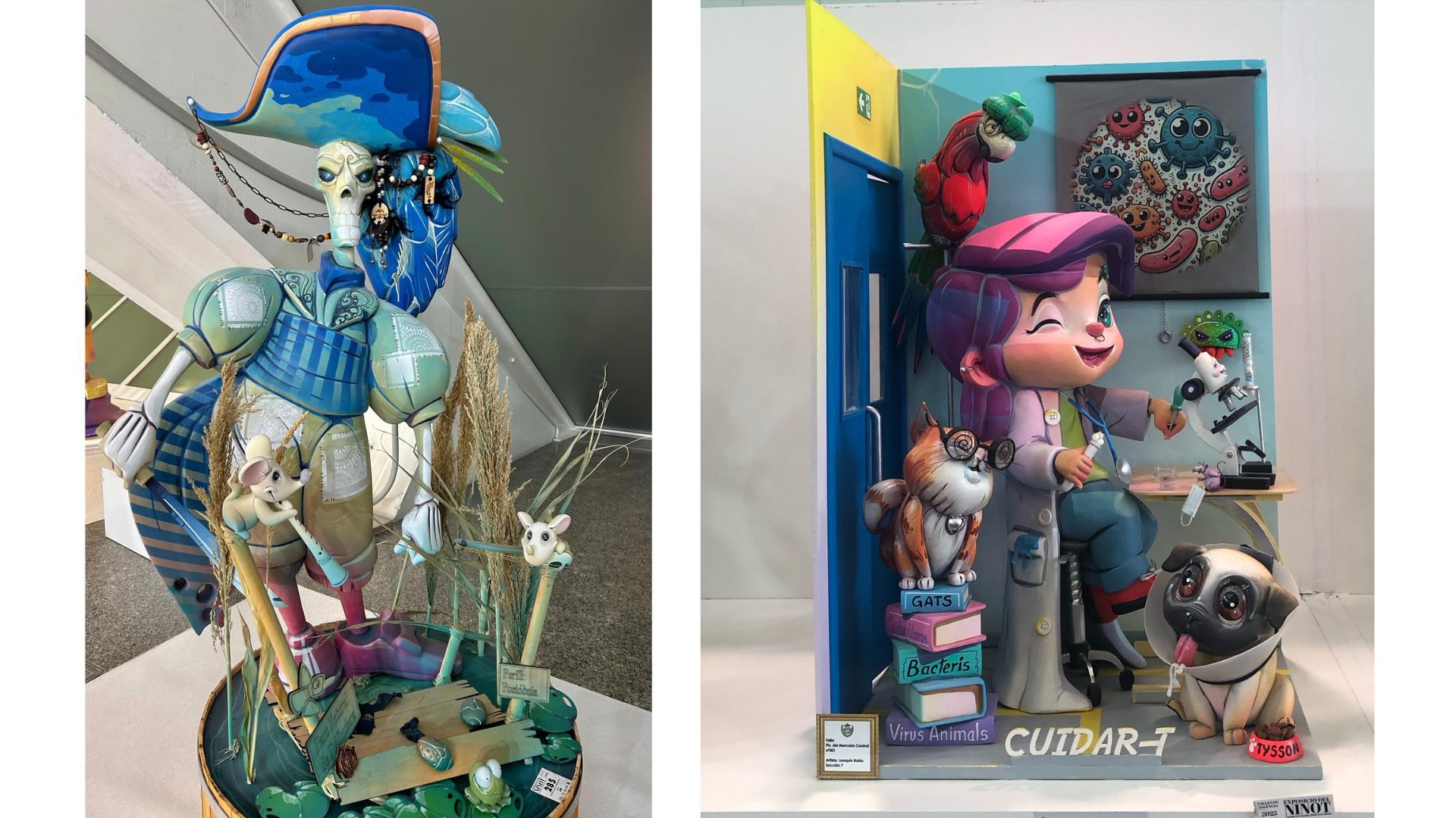 La figura de una niña científica que explora en un microscopio con el objetivo de cuidar a los animales ha ganado el ‘Premi Ninot Divulgació Científica’ y pertenece al monumento infantil de la Falla Plaça Mercat Central, que tiene por lema ‘Cuidar-t’, del artista Joaquín Rubio.