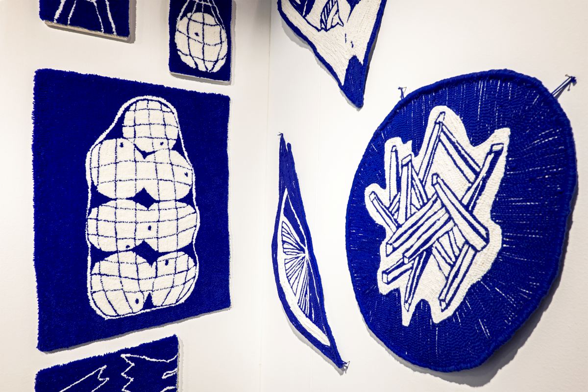 En Fam, fam, fam, Vallés busca realzar y plasmar lo cotidiano, homenajeando lo ritualístico que subyace en la liturgia del comer. La artista utiliza la técnica del tufting, que consiste en trabajar la lana sobre la tela, obteniendo obras con dos caras: una de acabado aterciopelado y pictórico, y otra más gráfica y señalética. El resultado es un conjunto de piezas que combinan la sencillez de las imágenes con la complejidad técnica, creando un espacio visual “amable y suave” donde se representa lo ceremonial del acto de comer.