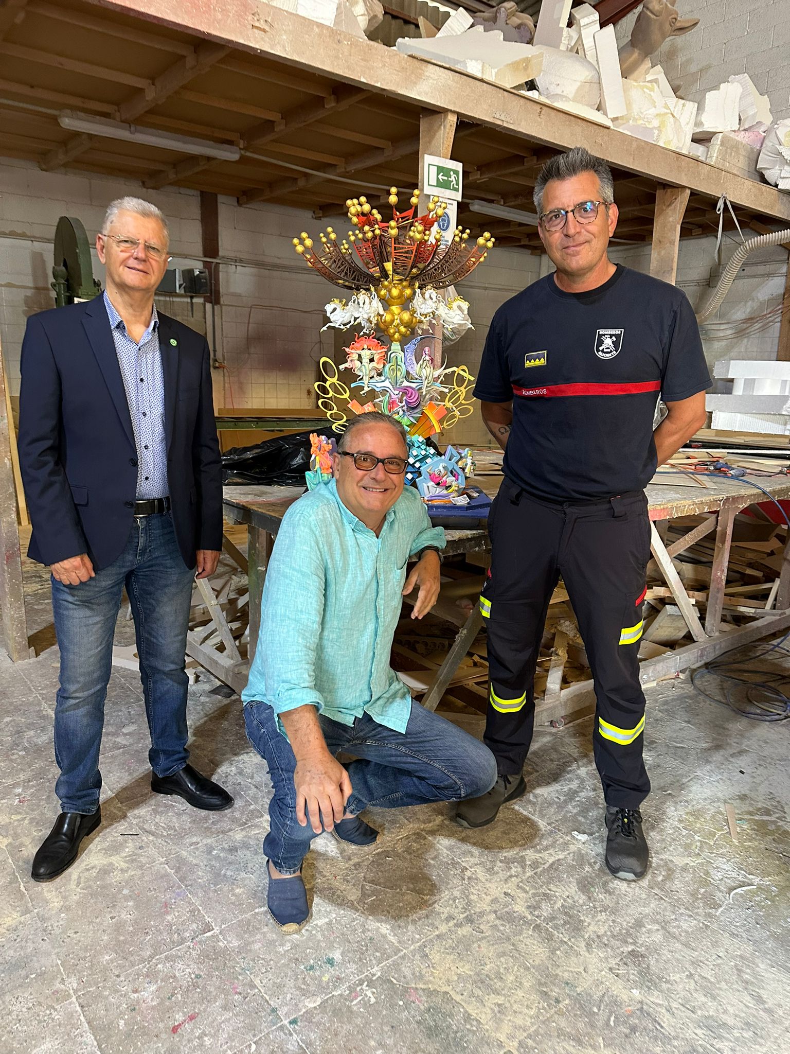 El concejal de Seguridad Ciudadana, Julio Calero, ha supervisado este martes, junto con el jefe de Bomberos, Daniel González, y al artista Pedro Espadero el plan de seguridad para la plantà y la cremà de la Hoguera Oficial, ‘Leyendas alicantinas’. Calero ha significado que “es imprescindible y necesario conjugar la protección de los ciudadanos en las aglomeraciones que puedan suscitar la plantà y la cremà, con el lógico desarrollo de la Fiesta”. Fijar un perímetro de seguridad acorde con los 20 metros de altura de la hoguera, situarla en un lugar de la Plaza del Ayuntamiento que durante la plantà y la cremà no afecte ni a la Audiencia Provincial ni a la Casa Consistorial o comprobar la estructura central son algunos de los aspectos sobre los que se ha centrado la entrevista de trabajo entre Calero, González y Espadero.