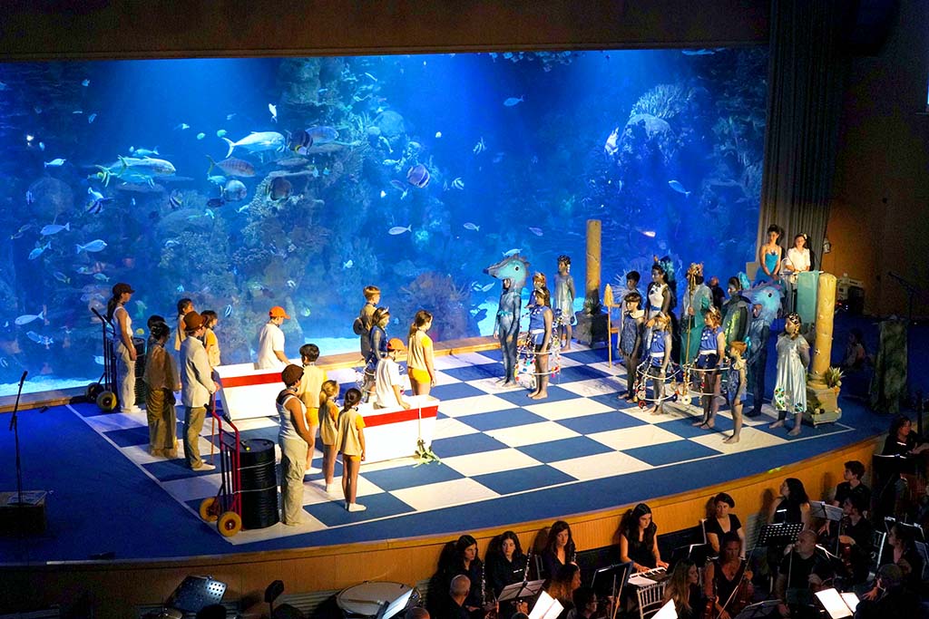 El lugar no pudo ser más idóneo para una escenificación que recrea la opresión y destrucción que el ser humano ejerce en los mares y océanos. El anfiteatro tiene como telón de fondo un impresionante acuario y la acción transcurre en las profundidades del entorno marino de l’Illa del Portitxol de Xàbia donde, continuamente, se están produciendo hallazgos arqueológicos y biológicos.