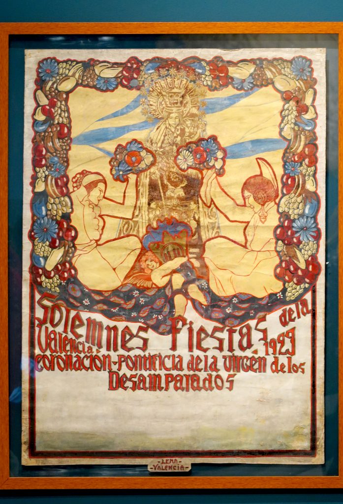 La exposición incluye una selección de lienzos con la temática de la coronación de la Virgen de autores como Joaquín Eiximeno, Ramón Stolz o Mariano Benlliure, así como dos carteles históricos sobre la coronación, de 1923, obra de Vicente Canet Cerbellón o Josep Renau.