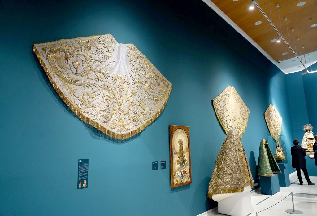 Sobre los mantos históricos, el comisario de la muestra ha hecho hincapié que “aquí podemos verlos como obras de arte, extendidos, para apreciar los detalles y toda su belleza, que no podemos ver del mismo modo cuando los lleva puestos la imagen en la Basílica, porque sólo se ve la parte delantera y, siempre, a distancia”, ha comentado.