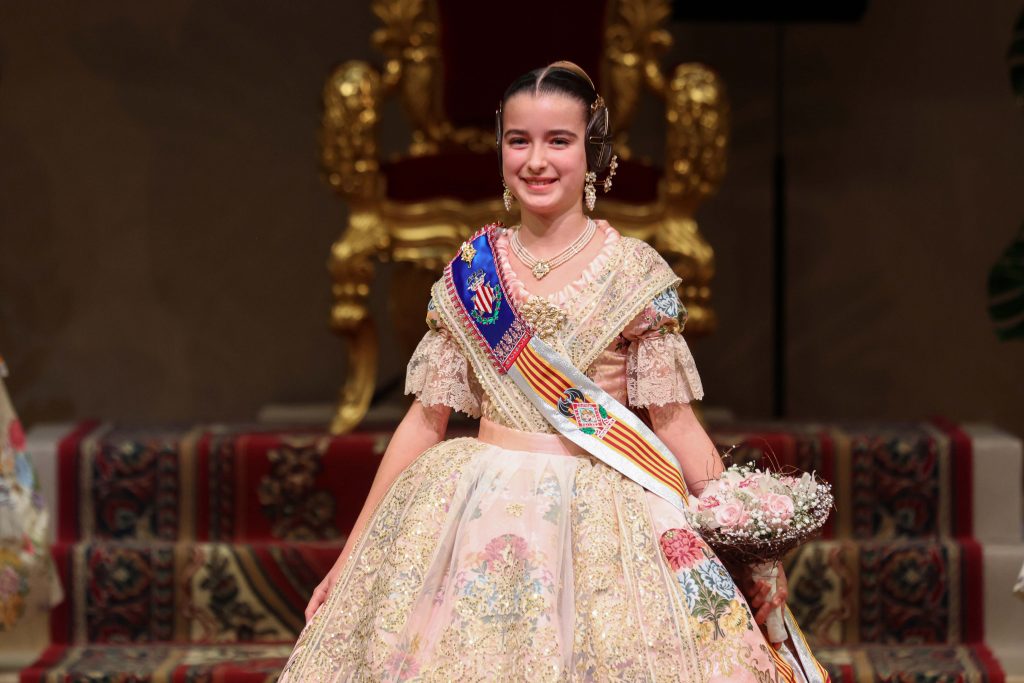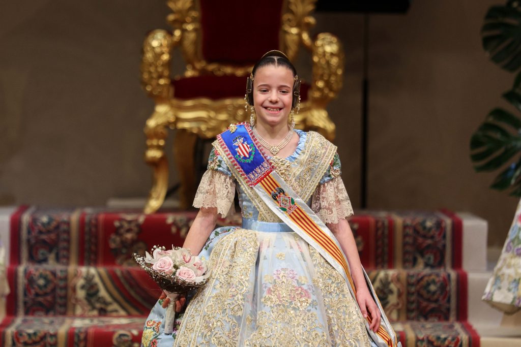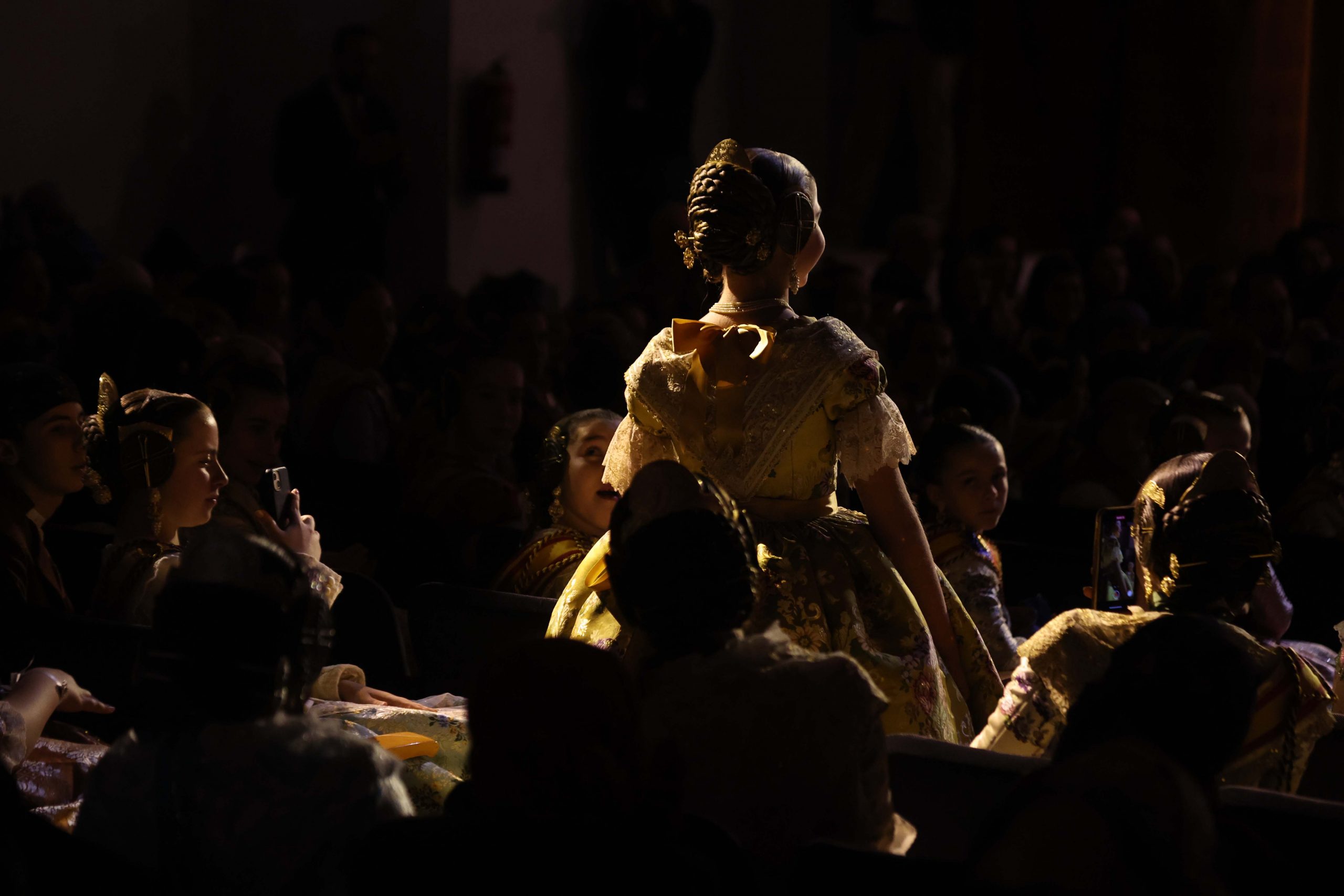 Després d’una vesprada plena d’espectacle, alegries i emocions, el Palau de la Música es preparava per a rebre en l’escenari a les dotze cortesanes de la Fallera Major Infantil de València.