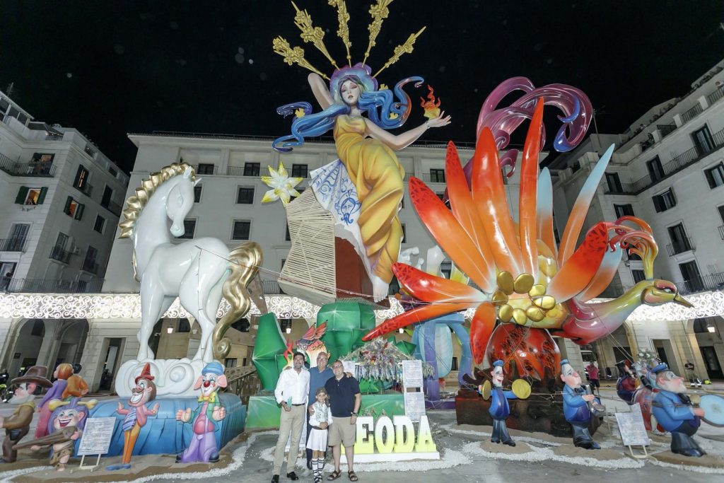 Con ‘D’ Alacant, al món’ convertida en ceniza, ha comenzado el espectáculo pirotécnico previo a la cremà de ‘Geoda’, que ha sorprendido al numeroso público que ha abarrotado el perímetro de seguridad de la Plaza del Ayuntamiento. Pedro Luis Sirvent, gerente de Hermanos Sirvent, ha apostado por una cremá con un triple sistema de fuegos «para que comience a arder de forma simultánea». Éstos, debido a la estructura de la hoguera que Sirvent había estudiado en los últimos días, los ha situado en la estructura central, en el caballo alusivo a los de la Plaza de los Luceros, y en el Ave Fénix.
