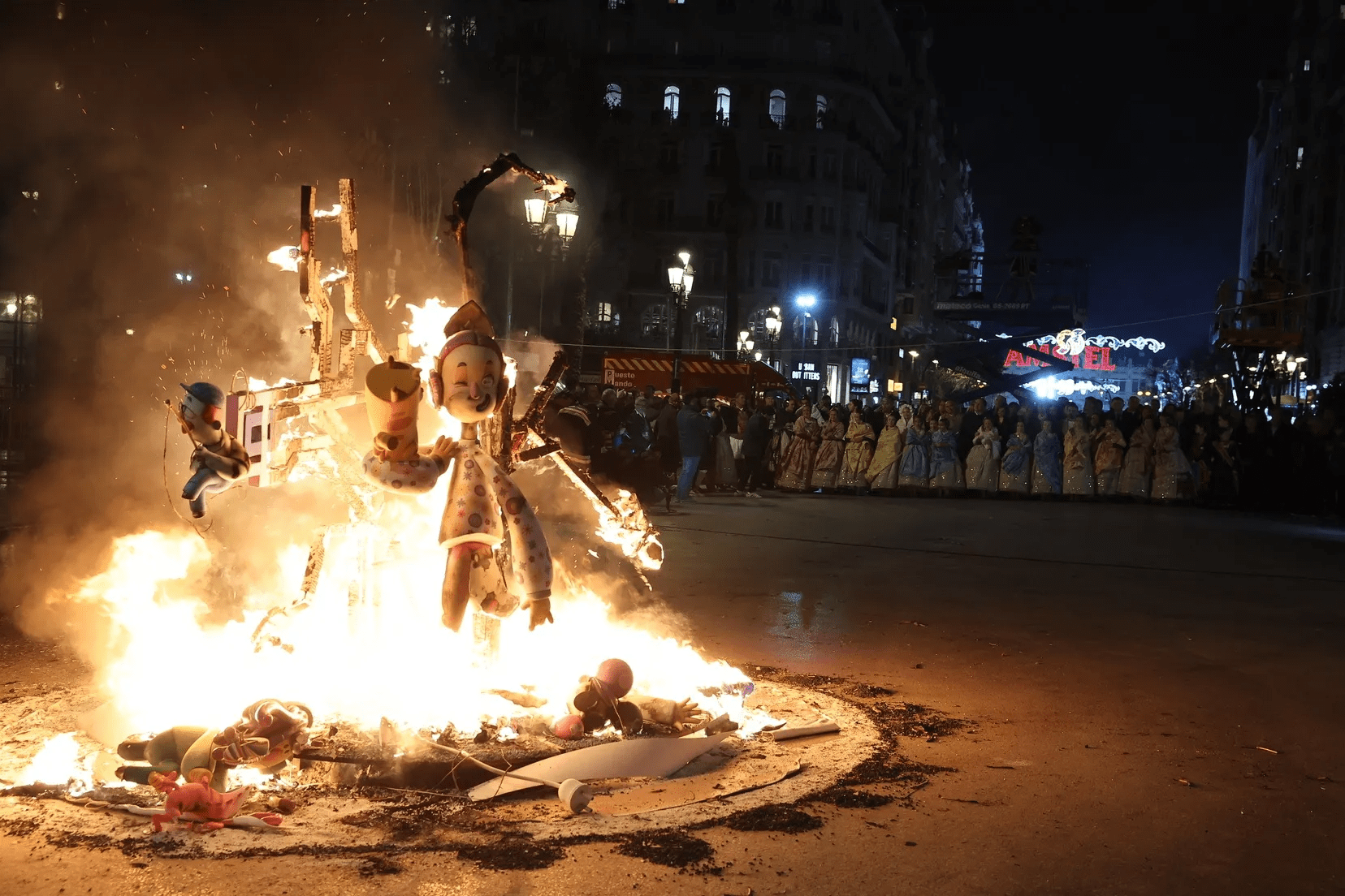 Miles de personas han seguido en directo la cremà del monumento principal de la ciudad, en un ambiente cargado de emoción, aplausos y despedidas, mientras el fuego consumía una de las obras más representativas de estas fiestas.