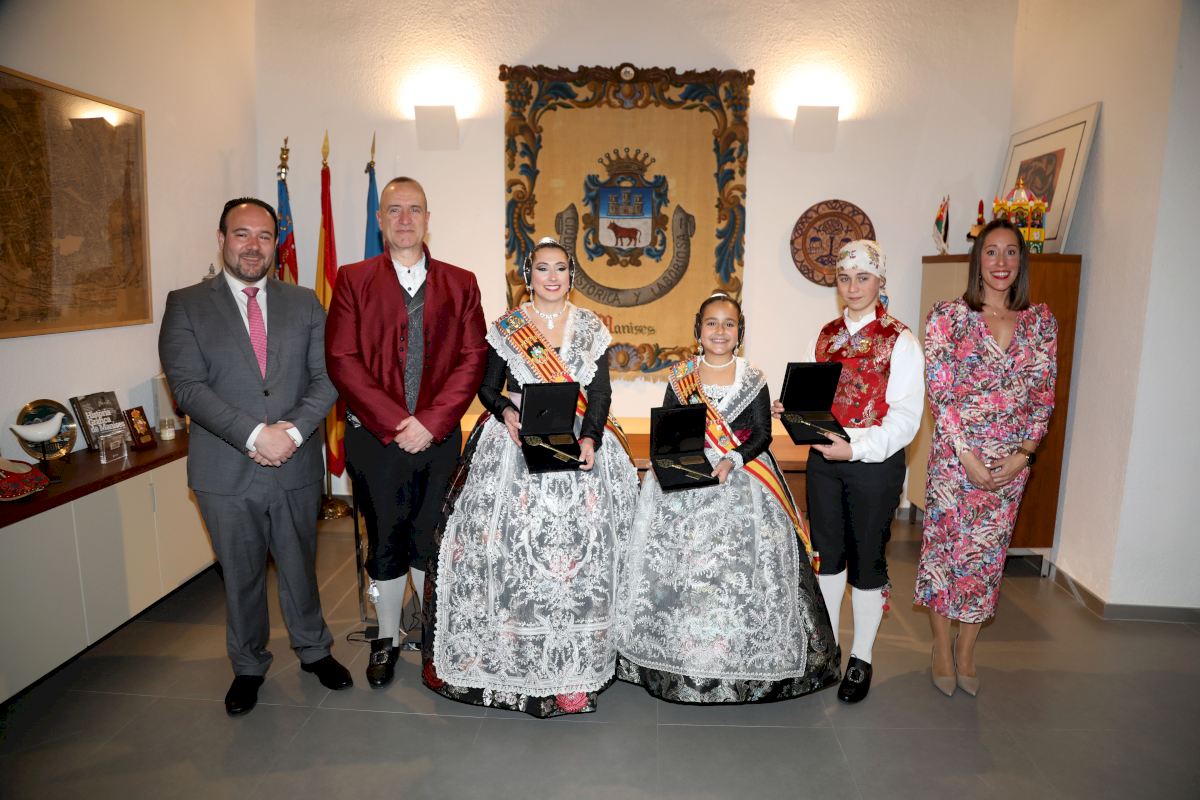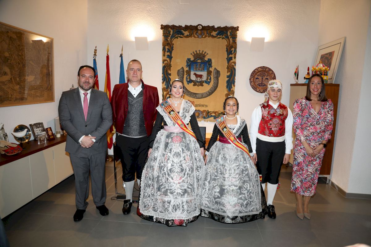 Falleros y falleras de las once comisiones se reunieron en la plaza del Castell para escuchar de las voces de las falleras mayores Carmen Pérez Catalán, Claudia Vinagre Rodríguez y del presidente Infantil Álvaro Roldán Beas Pérez de Tudela, el discurso que invita a participar de la fiesta a toda la ciudadanía.