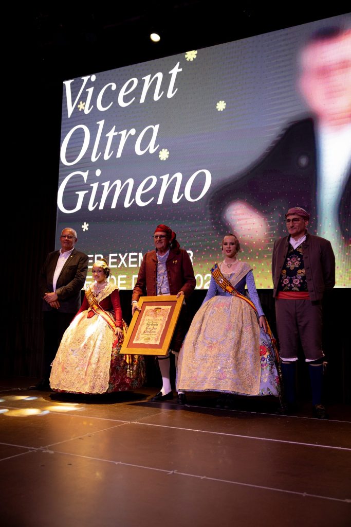 L’acció va continuar amb la celebració de la Gala Fallera, en la que es va retre homenatge als falleres exemplars de 2025, Vicent Oltra, de la falla Baix la Mar, i José Antonio Monsonís, de la falla Nou Camp Roig.
