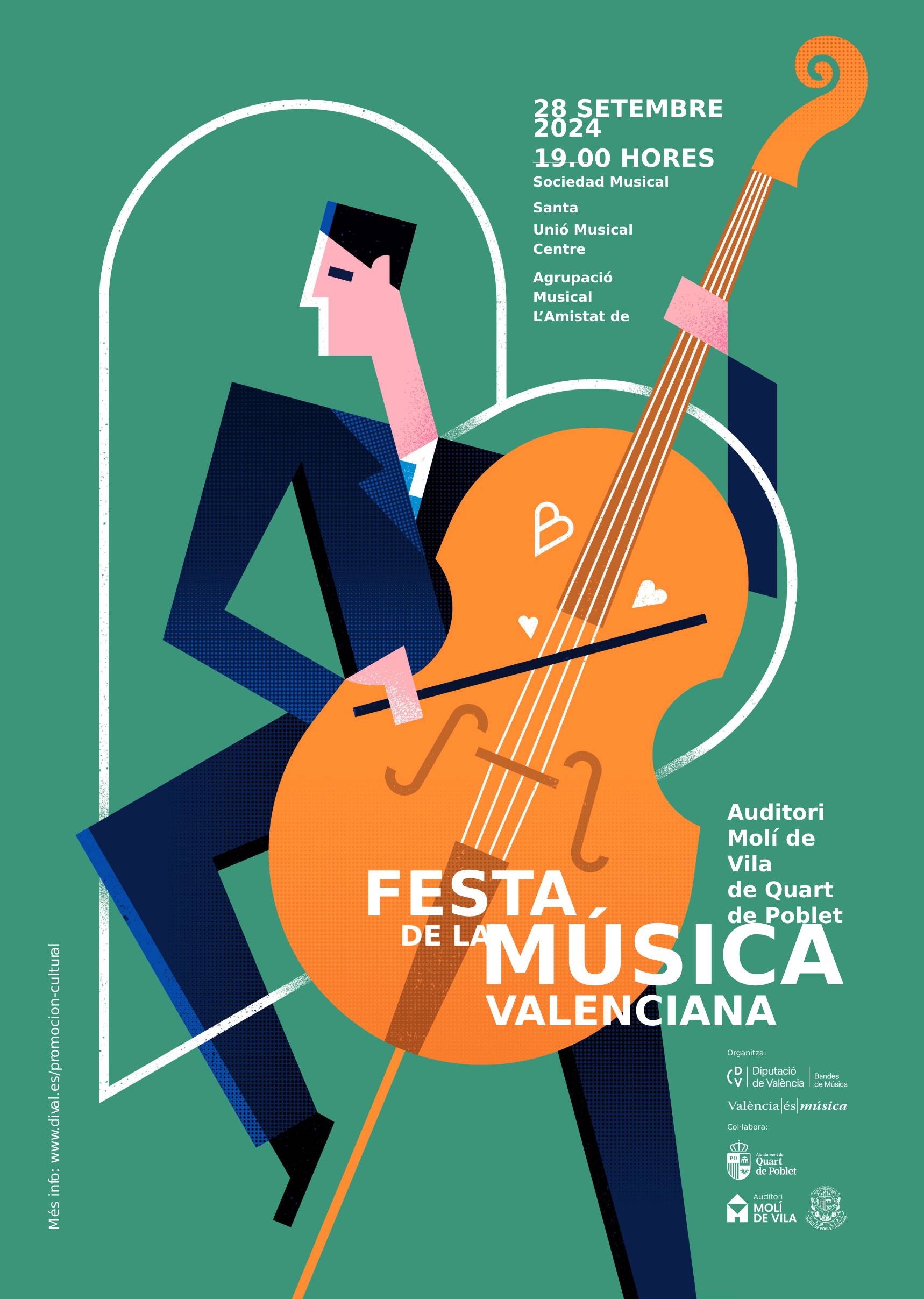 La Sociedad Musical Santa Cecilia de Chelva, la Unió Musical Centre Històric de València y la Agrupació Musical L’Amistat de Quart de Poblet serán las encargadas de llenar de música el auditorio Molí de Vila de Quart de Poblet para celebrar la Festa de la Música Valenciana que organiza la Diputació de València. La cita será este sábado a partir de las 19:00 horas y la entrada es gratuita hasta completar el aforo.