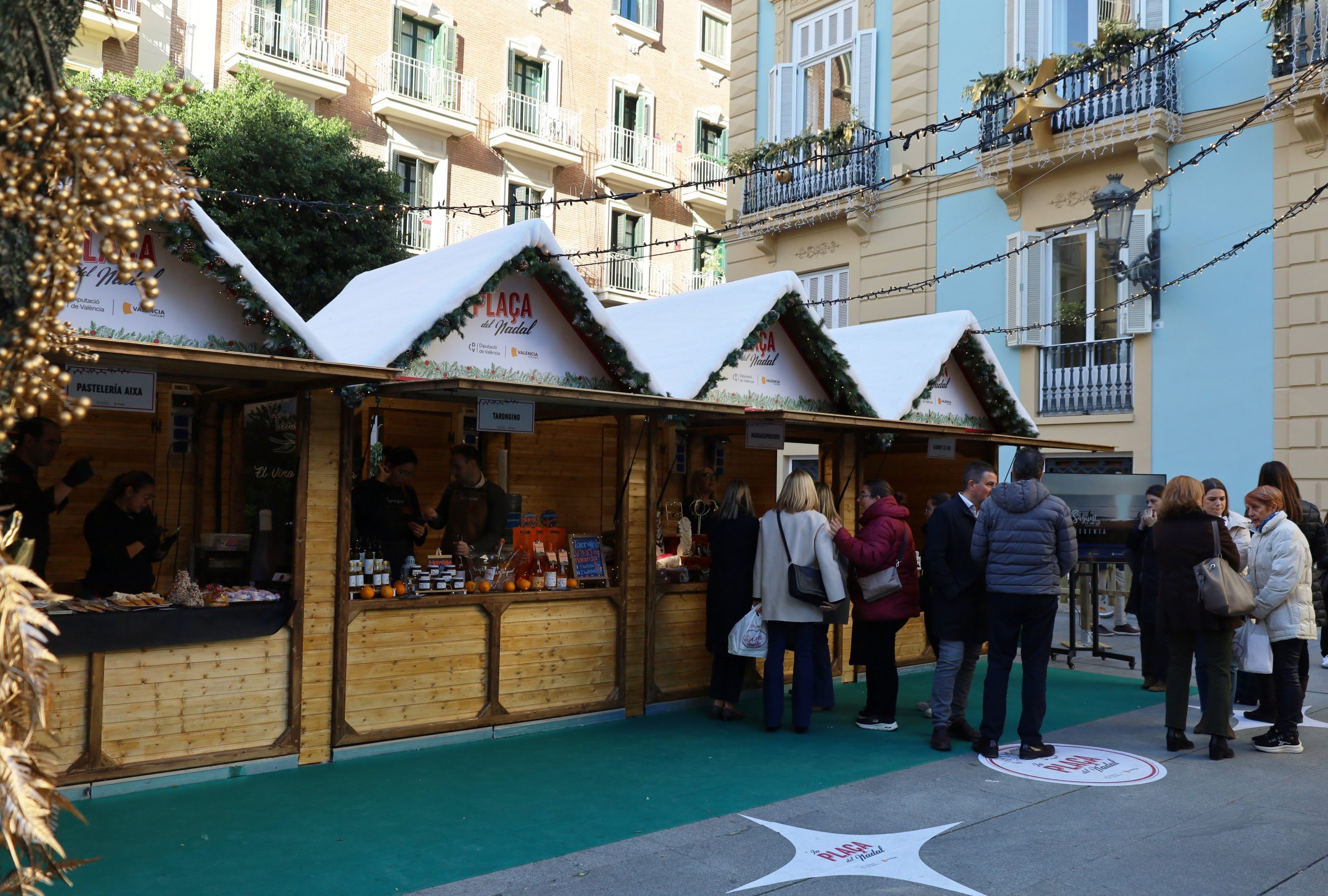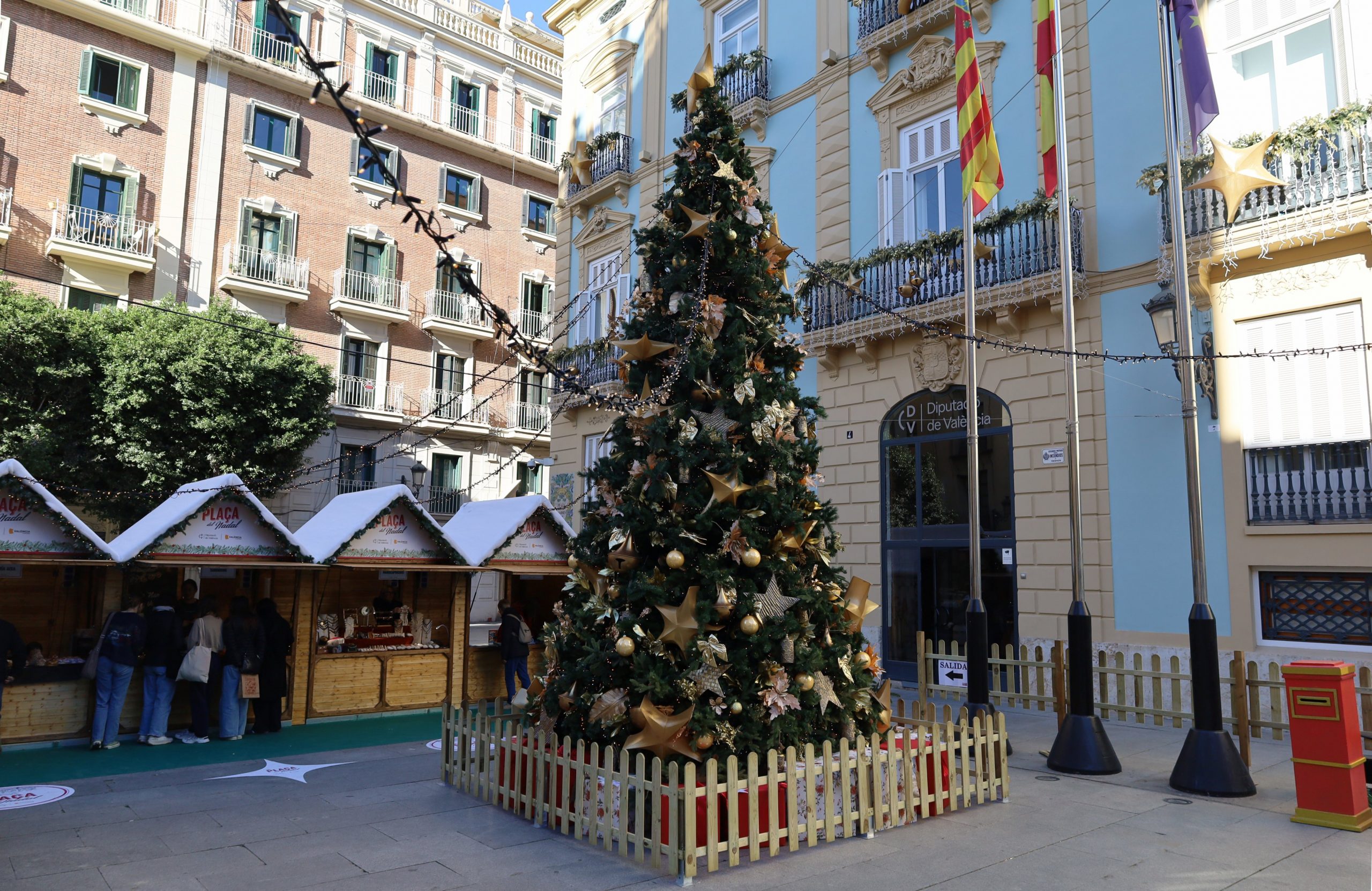 La Plaza Manises del cap i casal se transforma así en un mágico escenario navideño con el tradicional árbol como epicentro de toda la ornamentación propia de esta época; un escenario que acogerá espectáculos de magia, marionetas y danza, actuaciones musicales y exhibiciones deportivas; y las casetas de madera, en las que los municipios, las mancomunidades, productores y asociaciones de la provincia de Valencia darán a conocer y venderán sus productos artesanales locales (belenes, dulces, embutidos, etc.).